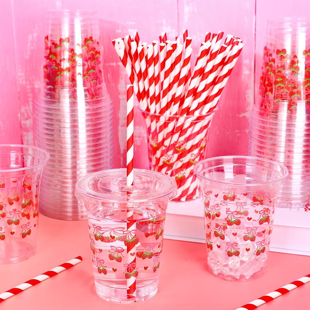 ADEQUATE QUANTITY: You will receive 50 pcs of plastic cups with 50 pcs lids and 50 pcs paper straws, sufficient quantities to help you and your friends have an enjoyable party