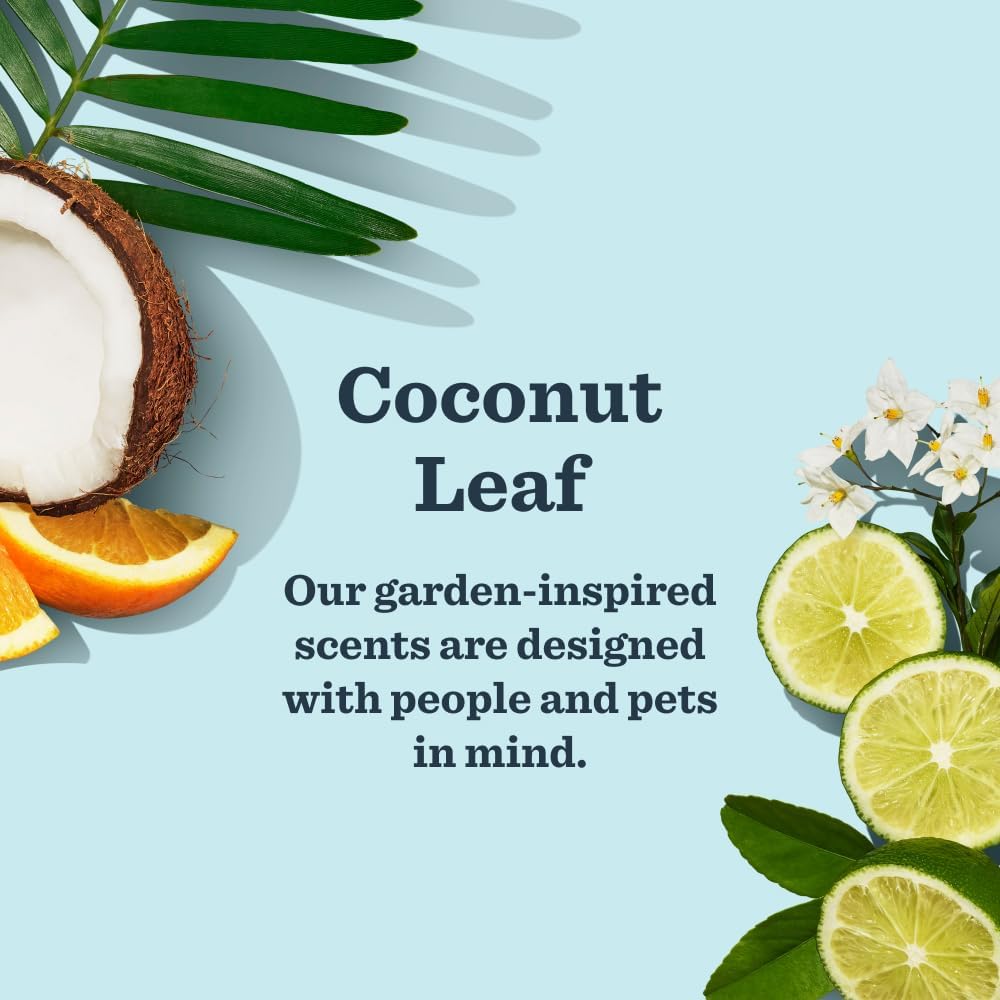 SCENTS DESIGNED WITH PEOPLE AND PETS IN MIND: White Peach scent smells like a ripe and juicy peach, a refreshing burst of sweetness that leaves your pup smelling as delightful as they are. Coconut Leaf scent smells like a fresh, breezy blend of green palms and creamy coconut—keeping your pet's world smelling like a tropical getaway
