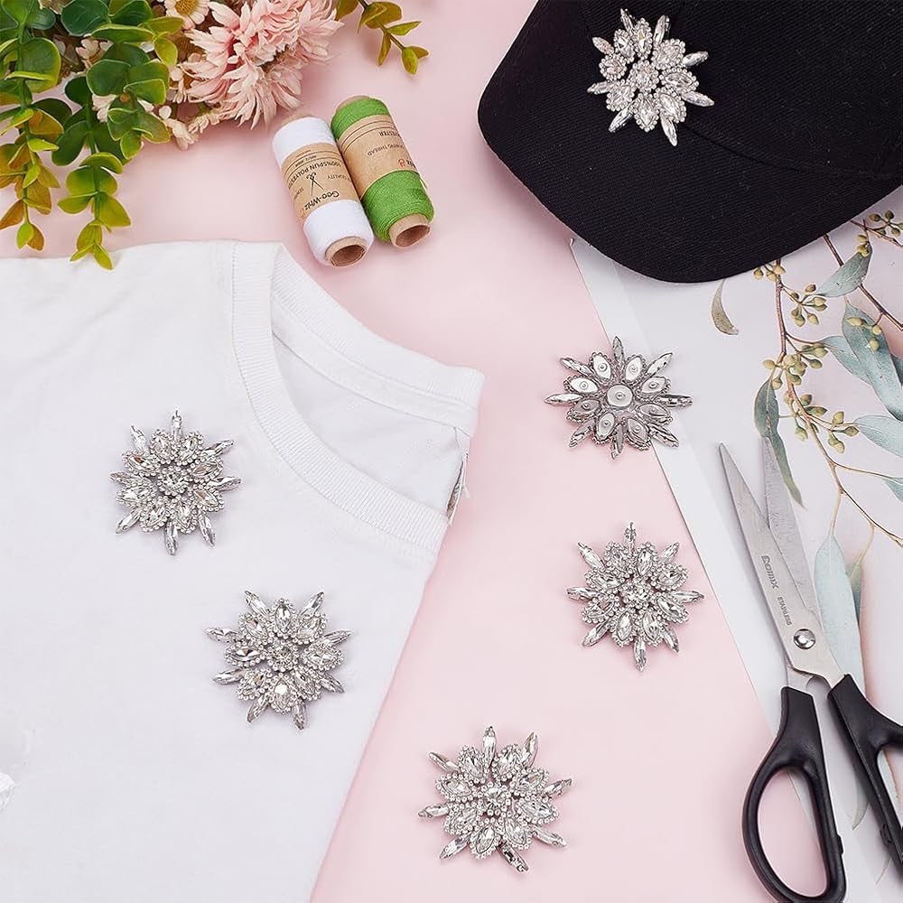 Unique Design: The applique is designed in the shape of a blooming flower. The bottom layer uses 8 teardrop-shaped rhinestones to imitate the petals of the flower, and the second layer of rhinestone petals and the big rhinestone in the middle are embellished with small rhinestones all around, creating a variety of pleasing visual effects at different angles and light colors, making you more charming.