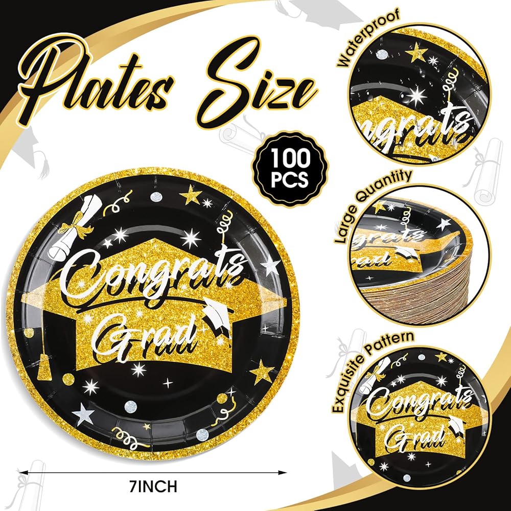Ample Quantity: this package consists of 100 graduation party plates with overall size of 7 inches approximately, sufficient quantity and ample capacity make it enough for your own use or sharing with others in your graduation party or school party, meeting multiple needs at one time