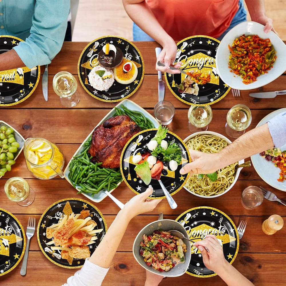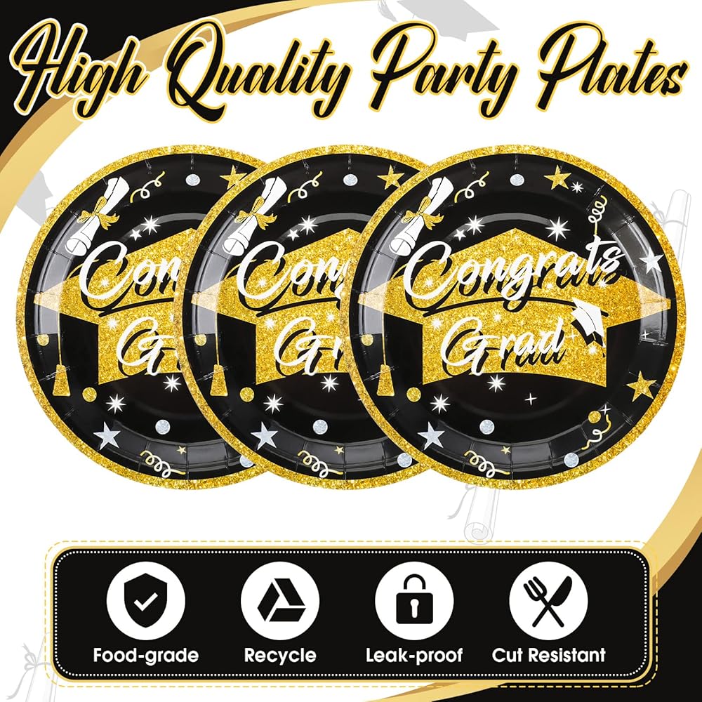 Easy to Use: these disposable paper plates are made of quality paper material, which are clean, stable and not easy to fold or break; Since these graduation decorations are all disposable, you can easily and quickly clean up when the graduation party is over, saving your valuable time