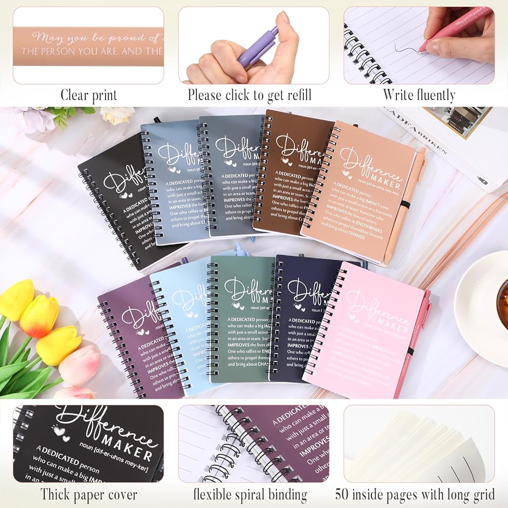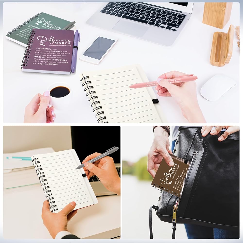 Difference Maker Gifts: the meaning of difference maker is printed on the journaling notebooks, expressing your sense of identity, gratitude and encouragement to your family, teachers, librarian, students, leaders, colleagues, volunteer, team, staff, executive assistants, board members, nurse and more, which can better promote the contact between each other; The words "may you be proud" are printed on the pens, this distinctive words give you a spark of motivation every time you pick up the pen