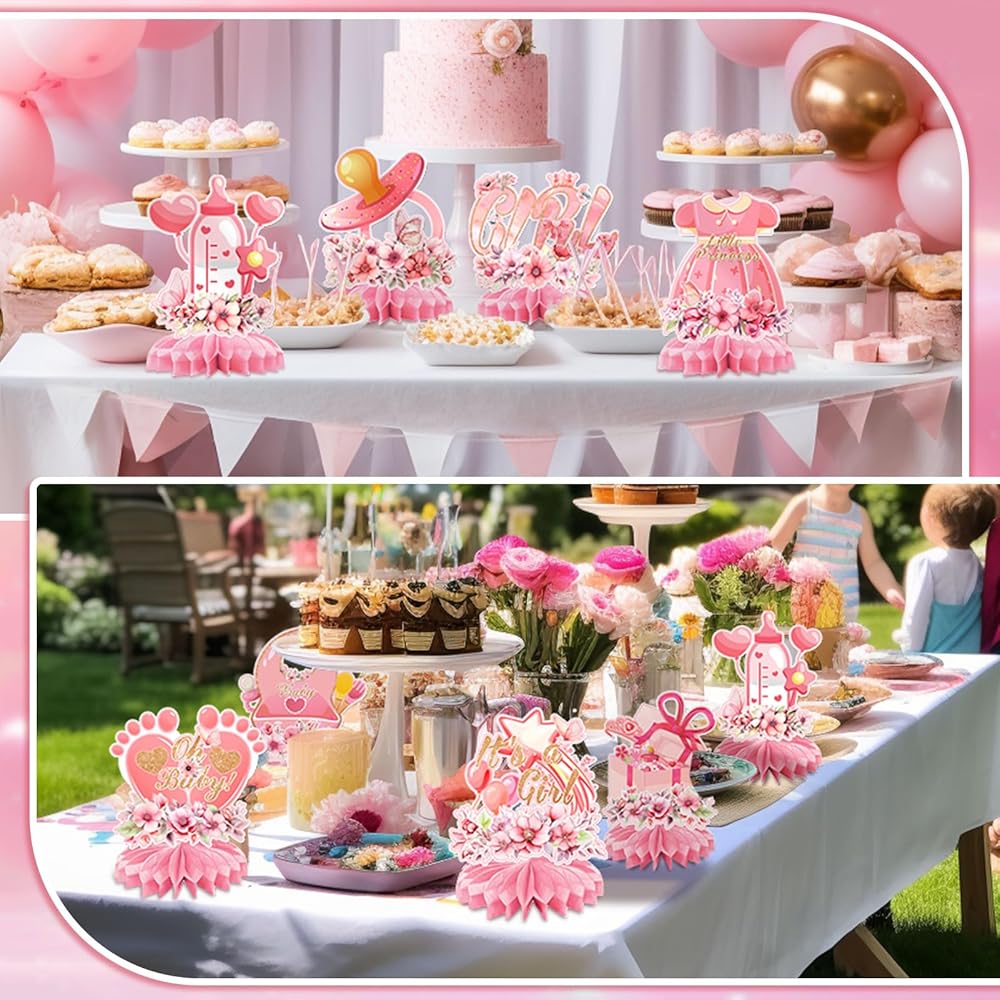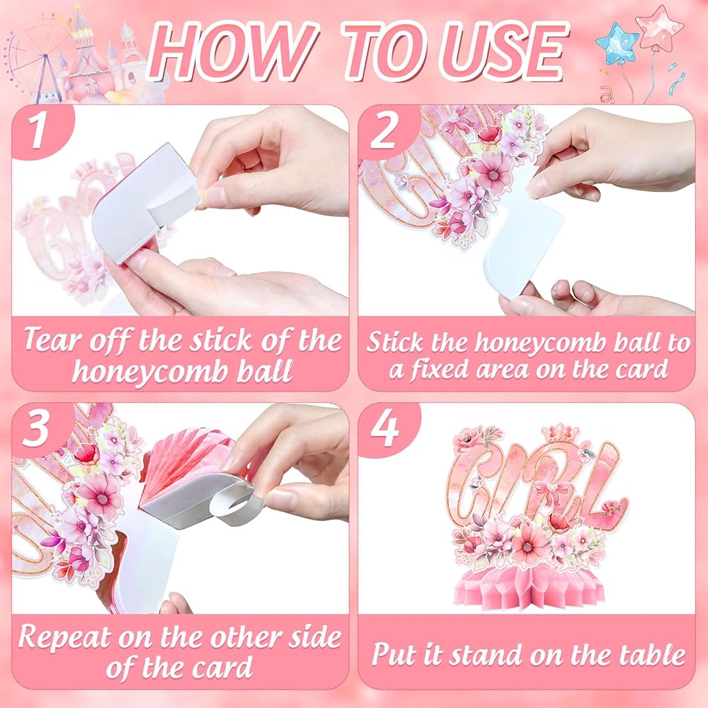 【Easy to Assemble】:Just open the honeycomb center piece and stick it to the card with double-sided tape to get a nice decoration. The table topper decoration only needs to be inserted into the card mark and it can be used.