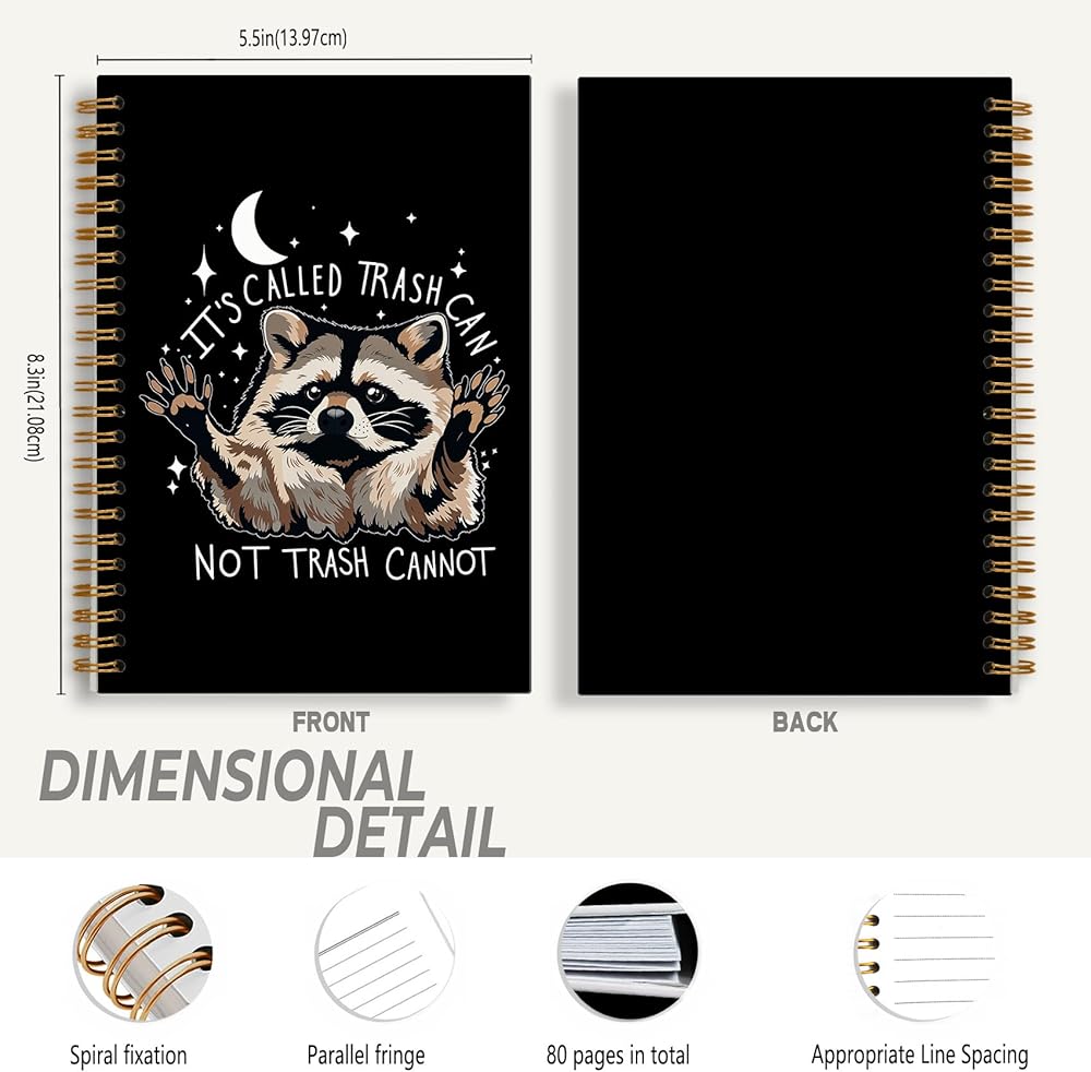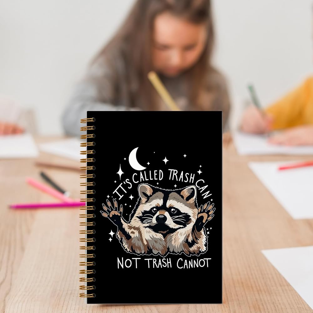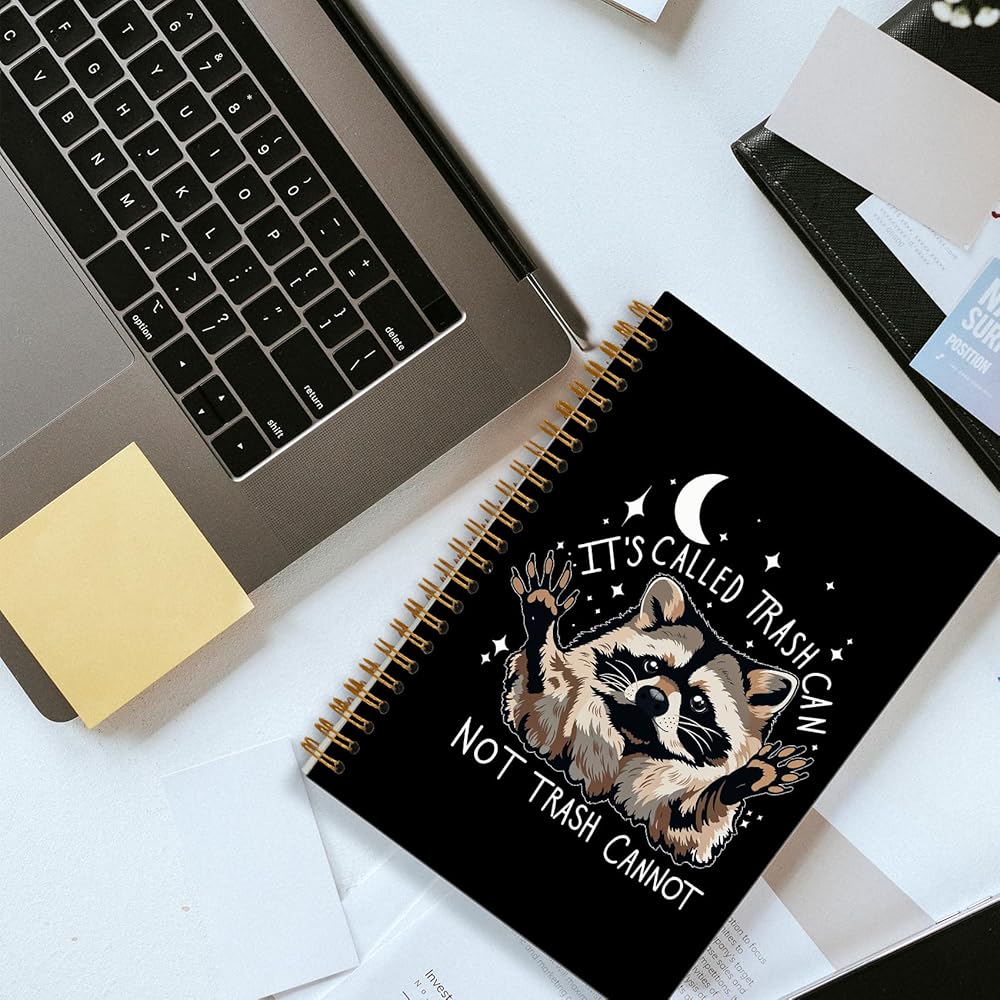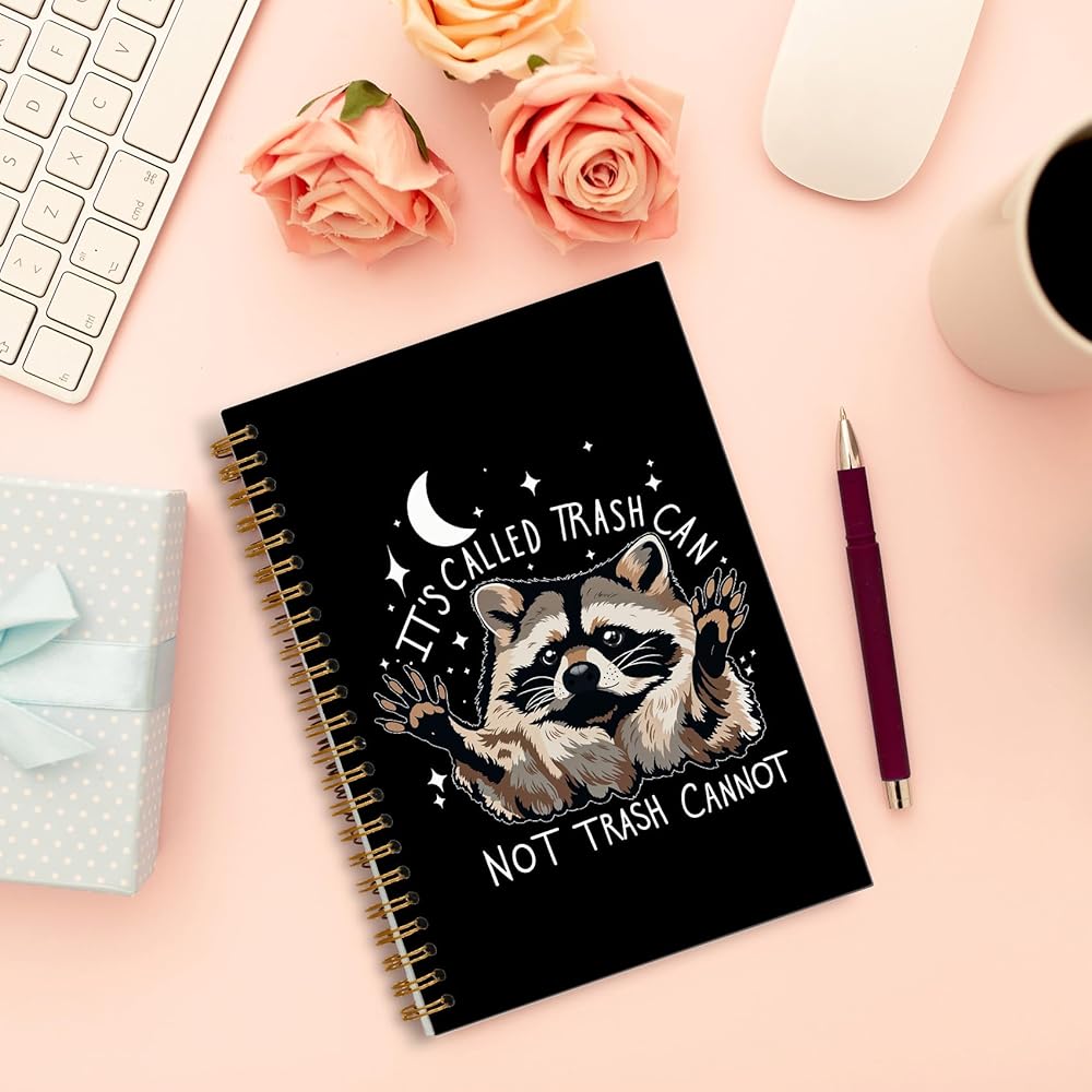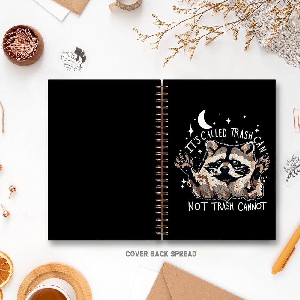 Funny Raccoon Notebook, Whimsical Celestial Raccoon Journal, Funny Office Supplies, It's Called Trash Can Not Trash Cannot Animal Spiral Notebooks 5.5x8.3 Inch