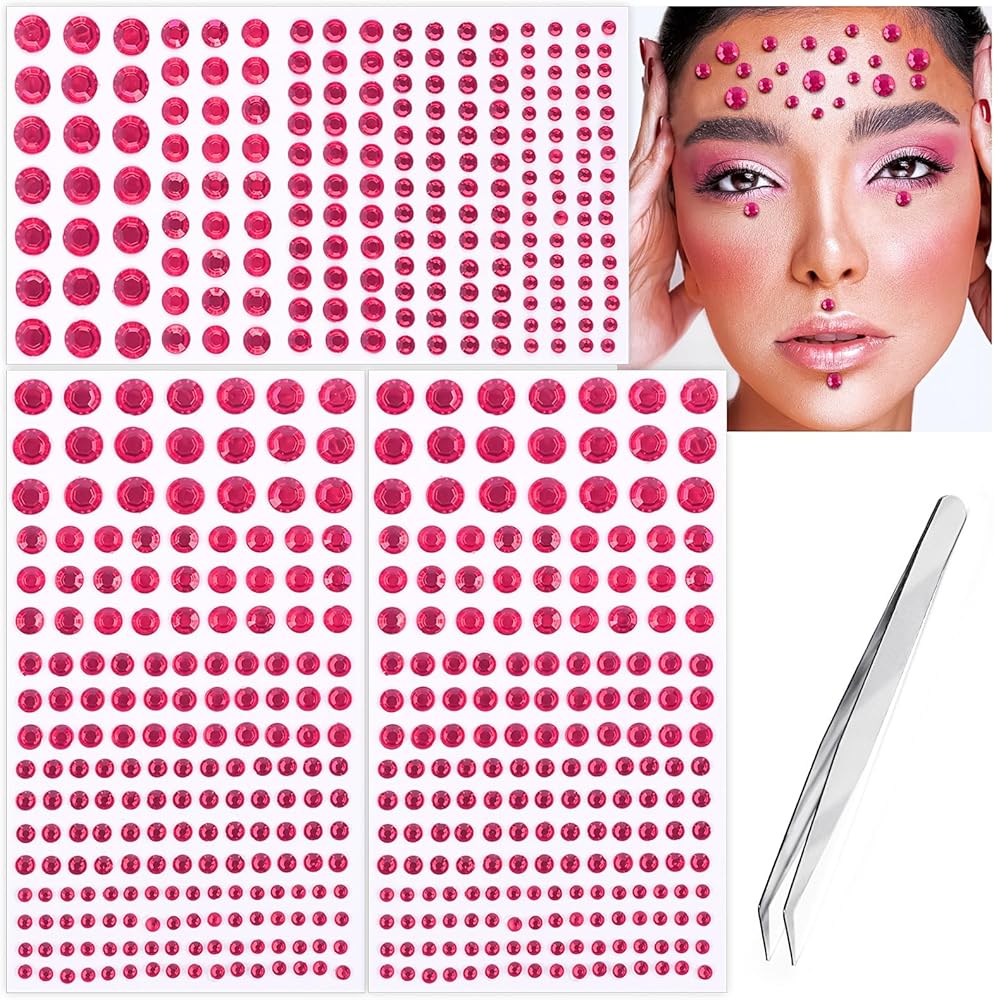 Face Gems Pearls for Makeup: 3 Sheets pre-made face gem stickers with tweezers in various sizes and colors to be used as freckles, eye gems, makeup festival, or anything you want! Once your skin is prepped, place your stick on makeup gem stickers where you would like them to go