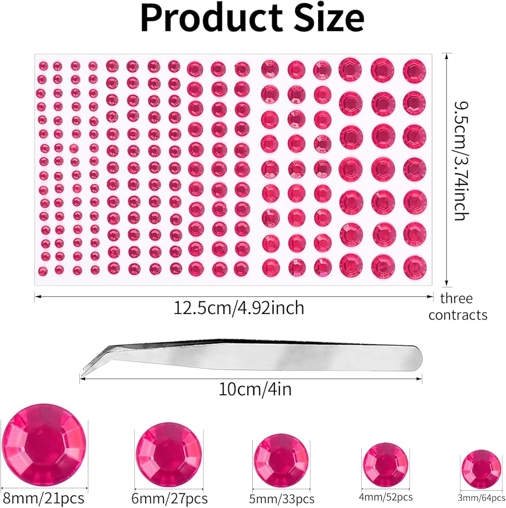 Rhinestones for Face: These self-adhesive face rhinestones are available in 3mm, 4mm, 5mm, 6mm, and 8mm sizes, and the various sizes are more convenient for you to use in makeup and DIY decorations. Face jewels stick on with medical-grade hypoallergenic adhesive, perfect for sticking on your eyes, face. Needn't prepare additional glue and save your time and energy