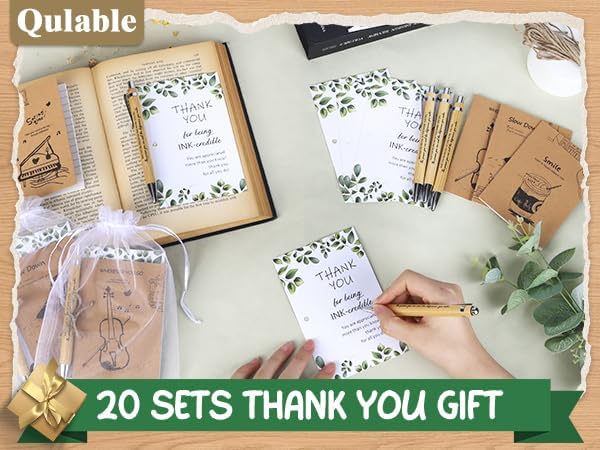 20 Sets Employee Appreciation Gifts Bulk,Thank You Gift Office Wood Bamboo Pens with Inspirational Bookmark Cards for Coworkers,Back to School Gift for Teacher