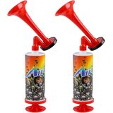 The air horn noisemakers never run out and no refills required, just simply press the handle and the horn will sound