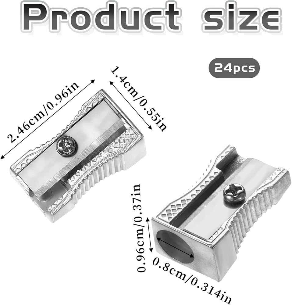 Sufficient Quantity: This set contains 24 metal pencil sharpeners, ensuring you have enough for daily use, replacement, and sharing with friends, classmates, or colleagues.