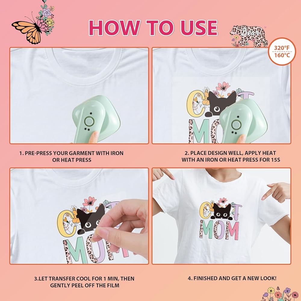 Easy To Use: Easy to use with a household iron or heat press, just apply at 338°F (150°C) for 10-15 seconds; Peel off the protective film for a seamless transfer that's perfect for both beginners and experienced crafters