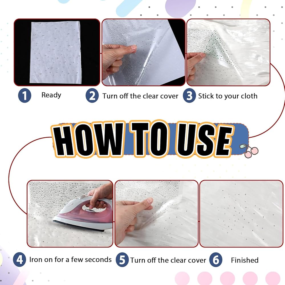 【Easy to Use】These heat iron on transfer rhinestones are easy to use, you just need to peel off the bottom sticker, stick it on the fabric to be pasted, and then iron it with a household iron or heat transfer machine
