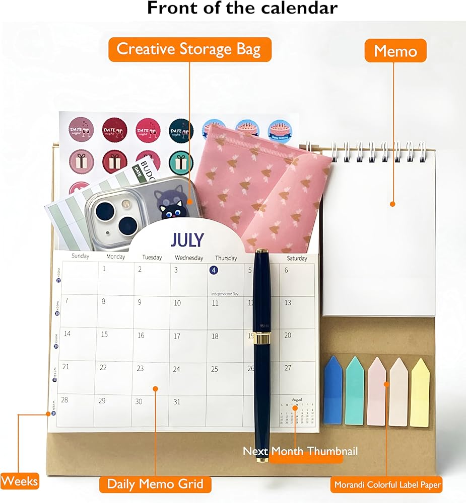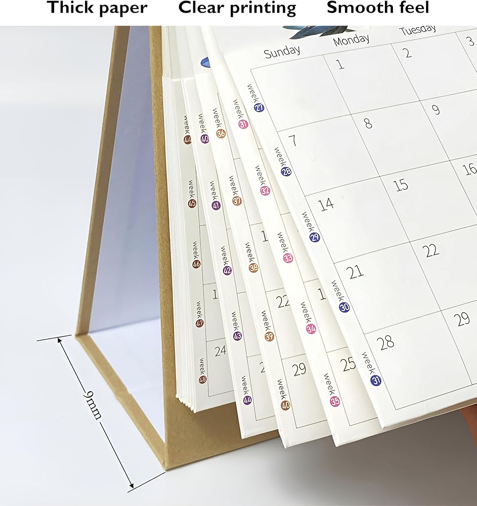 PREMIUM MATERIAL:Our monthly calendar 2024-2025 uses premium thick paper, and has no writing problems such as ink leakage and shadow. Also the strong metal Twin-Wire Binding can help you to flip this desktop calendar easily.