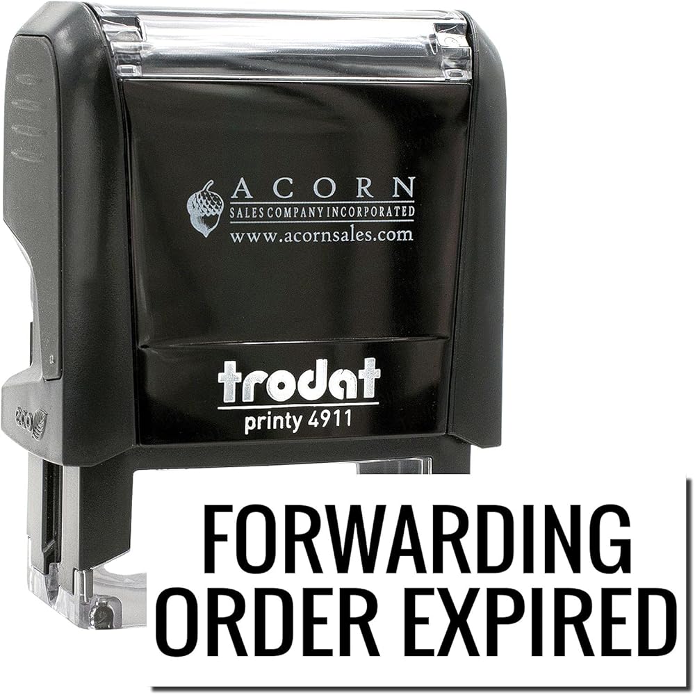 Self-Inking Forwarding Order Expiring Stamp, Shipping Supplies, Up to 5K Impressions, Available in 11 Ink Colors, Reinkable, Easy Press and Print Stamping, Size Approx 1/2" x 1-1/2"