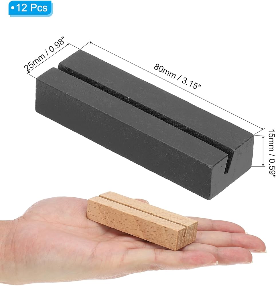 PATIKIL Wood Place Card Holder, 12Pcs Table Sign Holder Table Number Holders Name Card Stands for Photo Menu Display Wedding Ceremony Birthday Party Decorations, Black