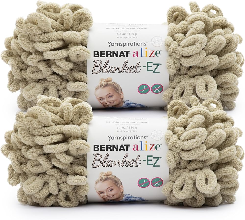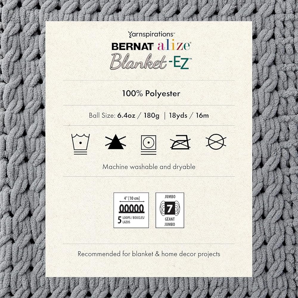 Time to get crafty with Bernat Alize Blanket-EZ! This yarn features unique preformed loops. With no needles or hooks required, Blanket-EZ projects are completed faster and easier than traditional knitting.