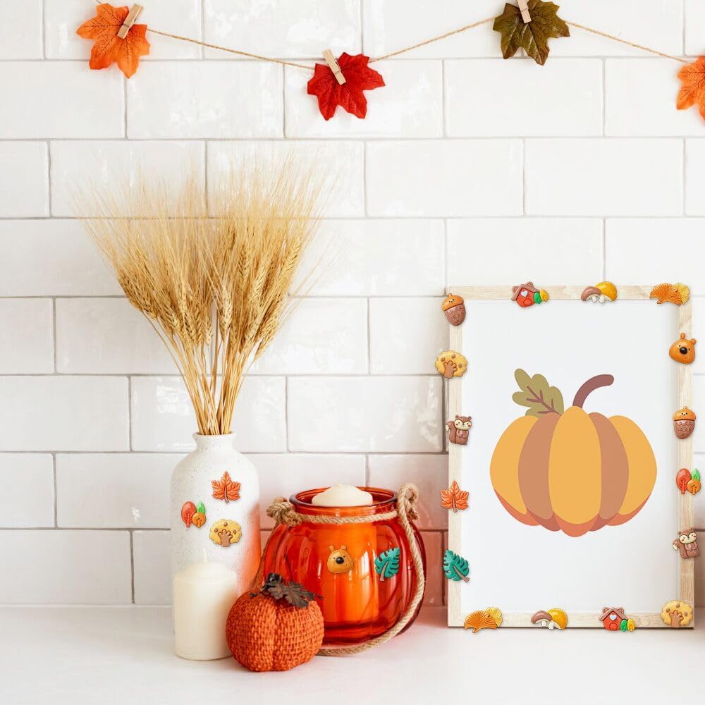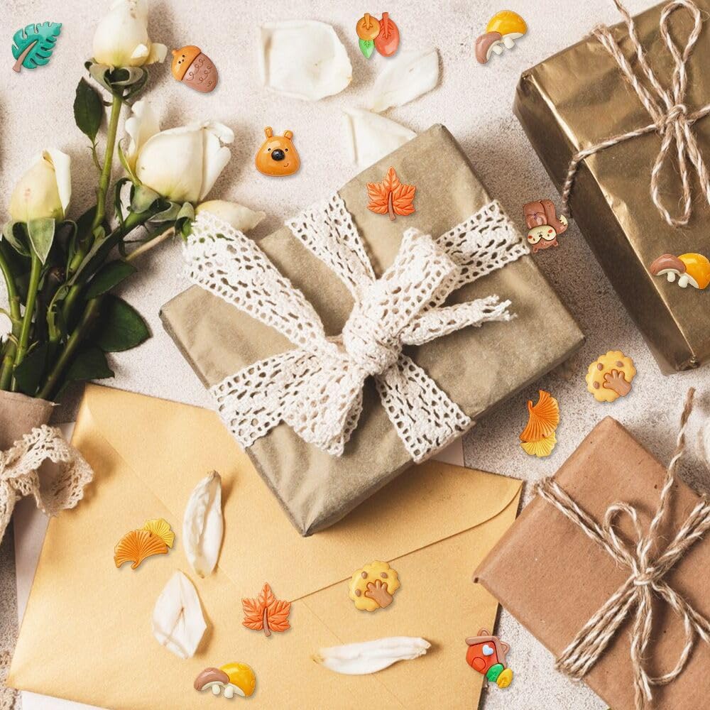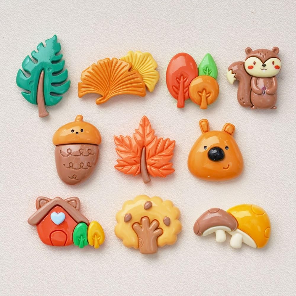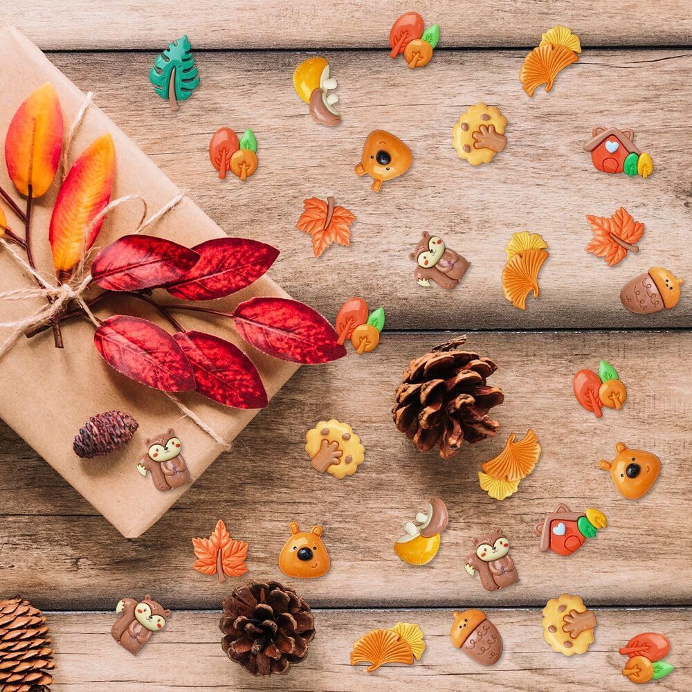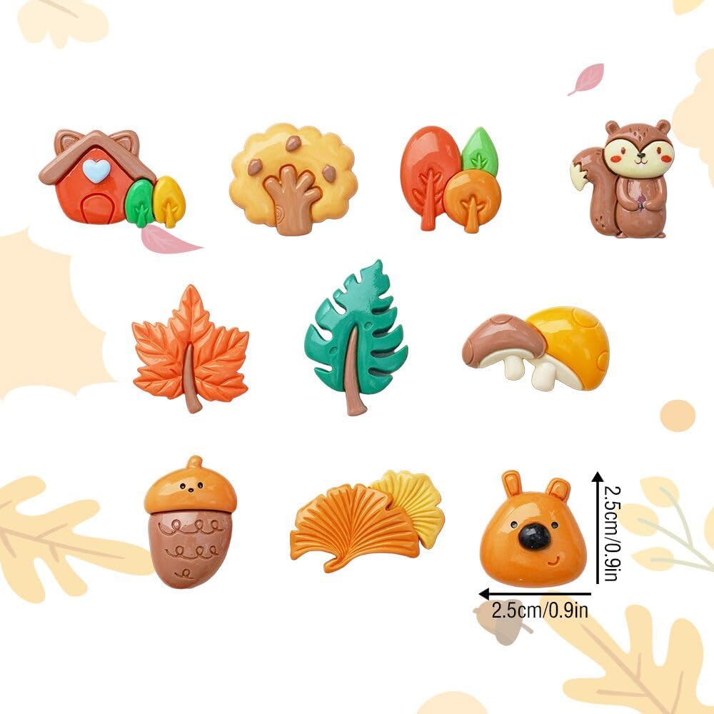 50 Pcs Maple Leaves Acorn Squirrels Resin Slime Charms,Flat Back 3D Charm Bulk for Crafts,Fall Embellishments for DIY Scrapbooking Nail Phone Jewelry Making Decorations (Orange&Brown)