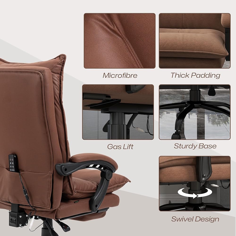 Soothing Massage Features: Experience comfort with a six-point vibration massage in five modes and lumbar heating to relieve lower back tension. Easily control settings with the included remote for a personalized relaxation experience.