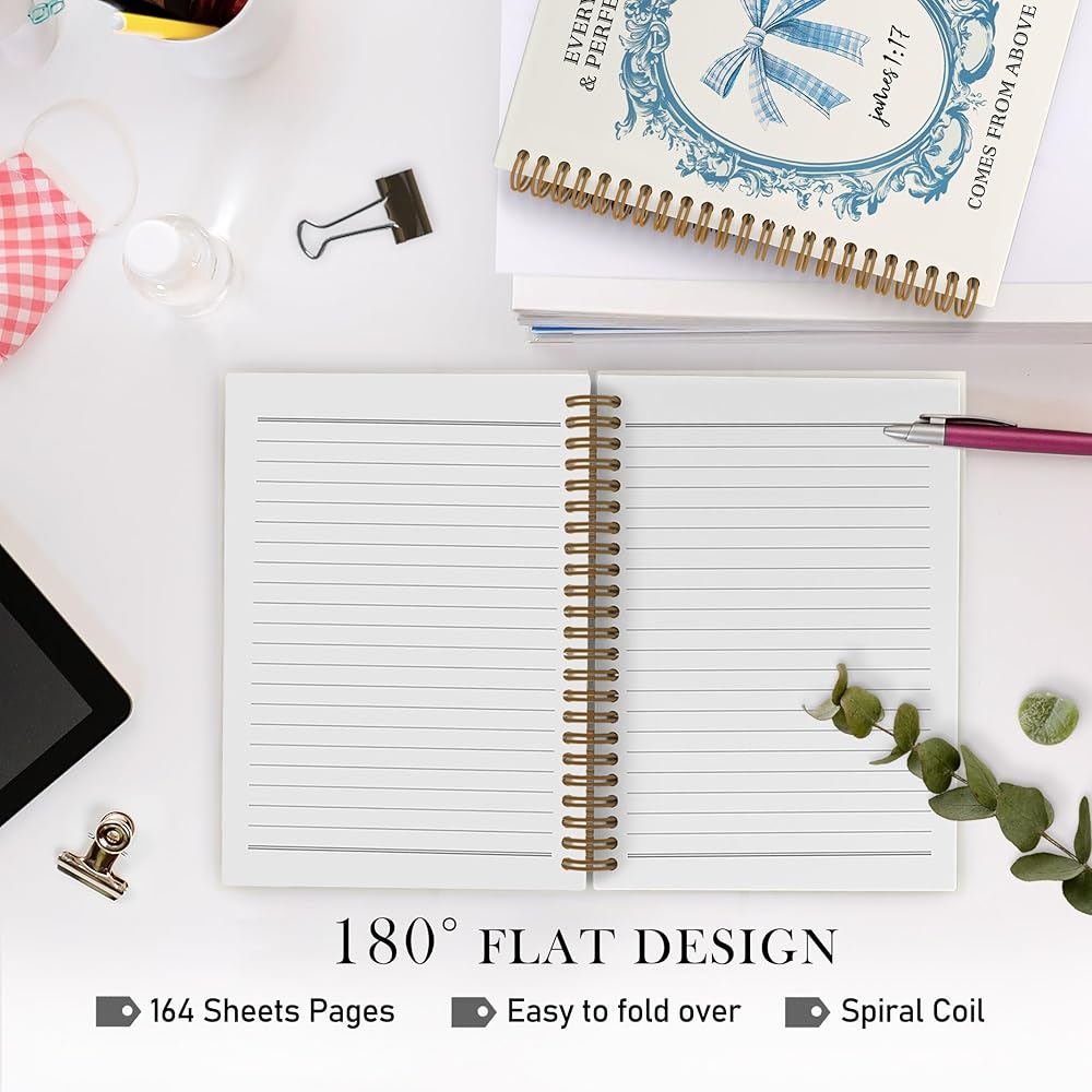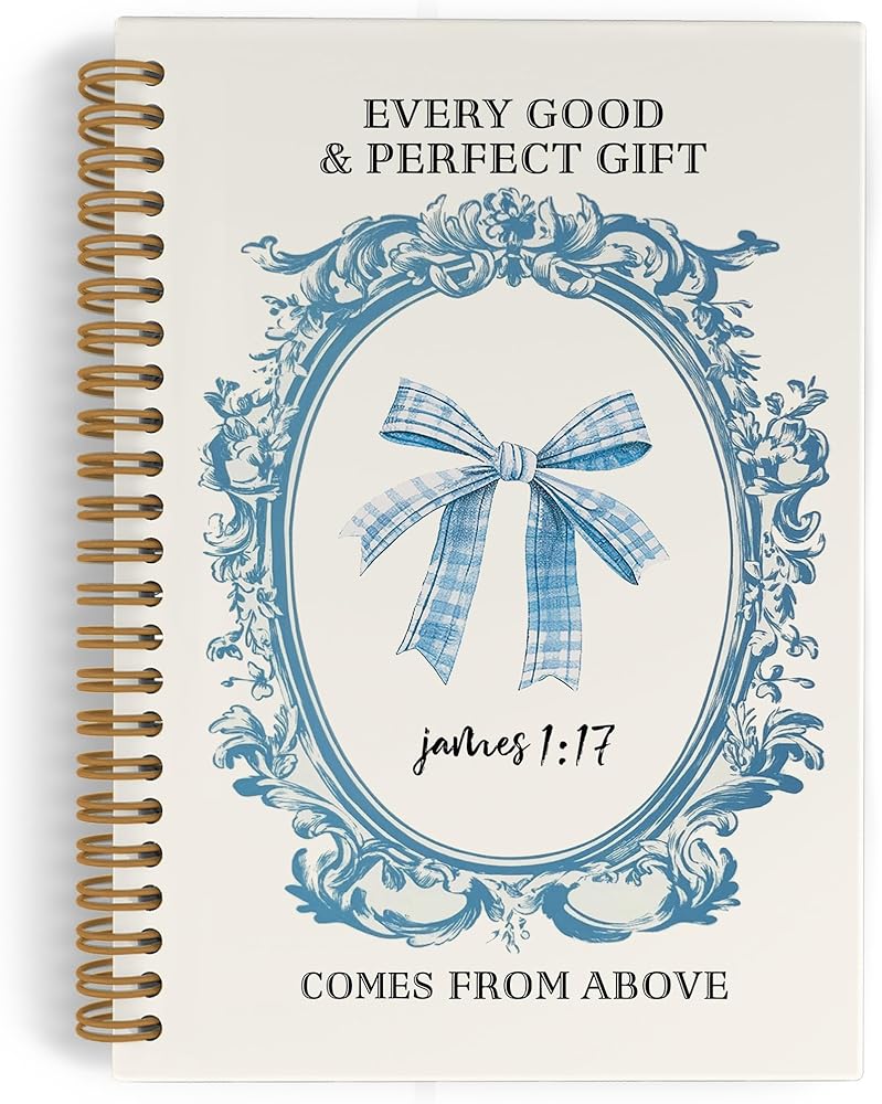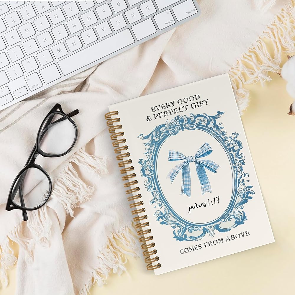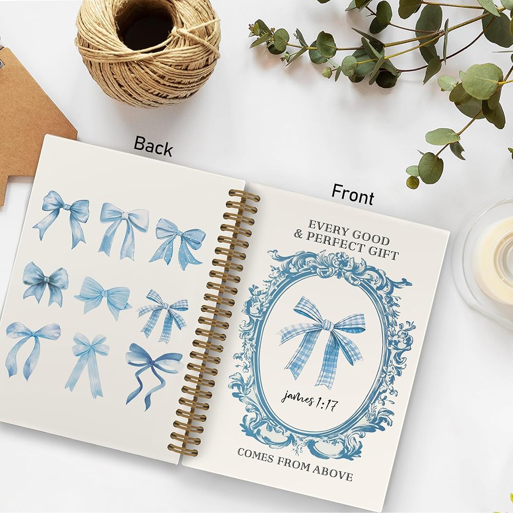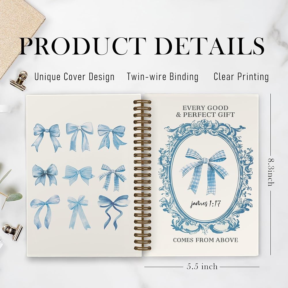 Blue Bow Christian Spiral Notebook for Women, Coquette Bible Journal Notebook for School Work, Bible Notebooks for Note Taking, James 1:17 Office Supplies Gifts for Women Girls, 5.5x8.3 Inch