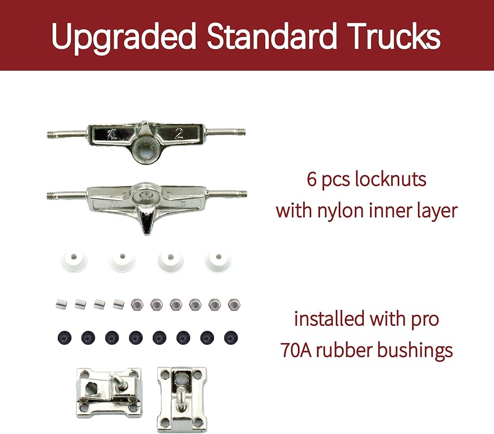 ★ Fingerboard Trucks - 32mm standard trucks with upgraded 70A pro bushings and self-lock locknuts