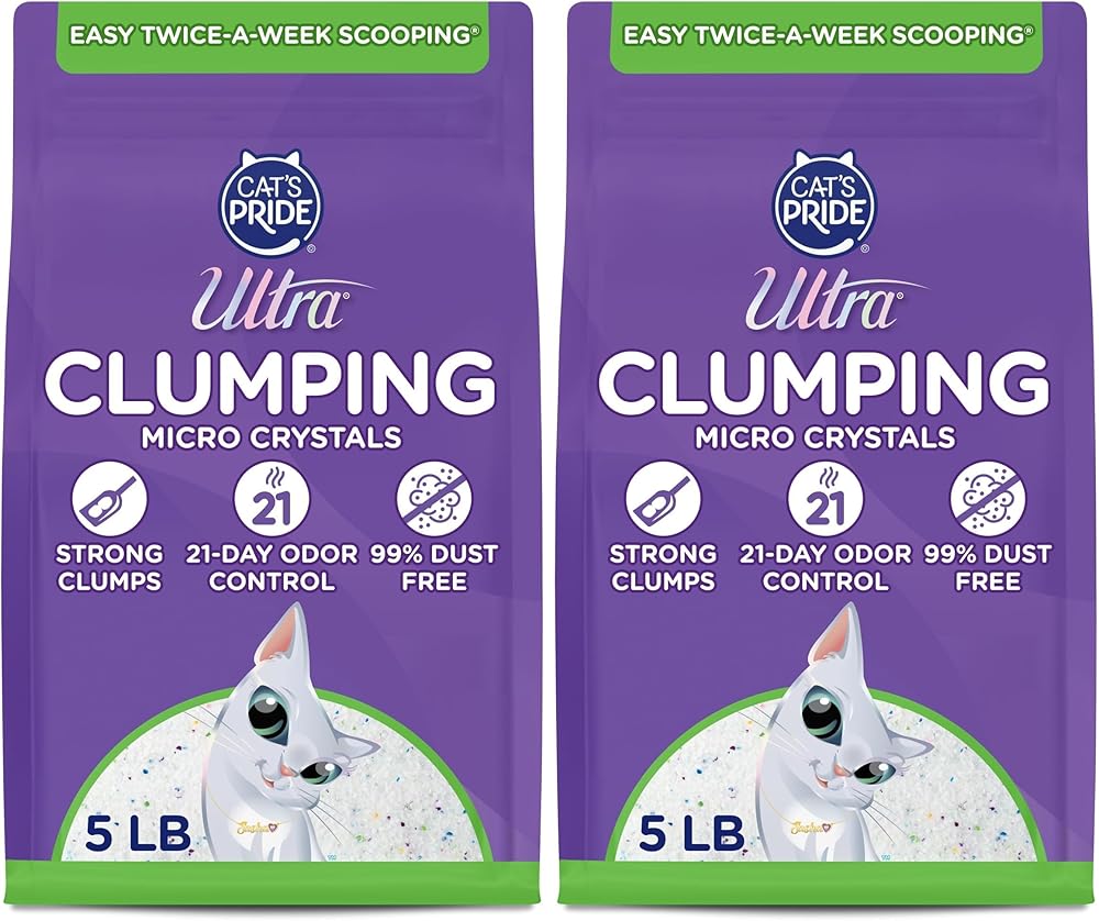 Clumping Micro Crystals - fragrance-free, clumping cat litter forms sturdy clumps that control the most pungent odors and makes scooping easy by trapping urine on contact and quickly drying solid waste