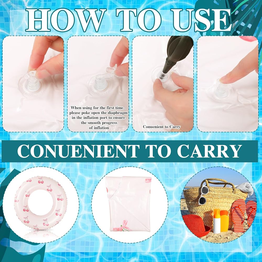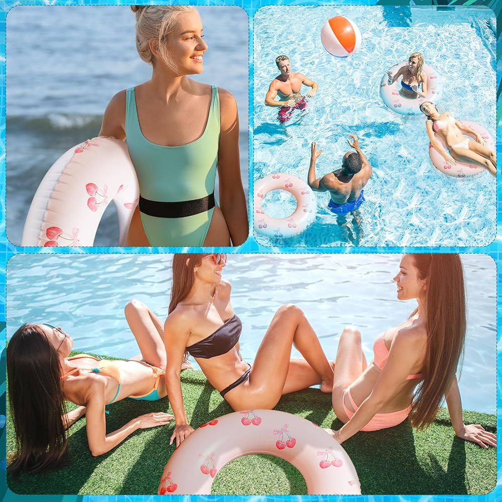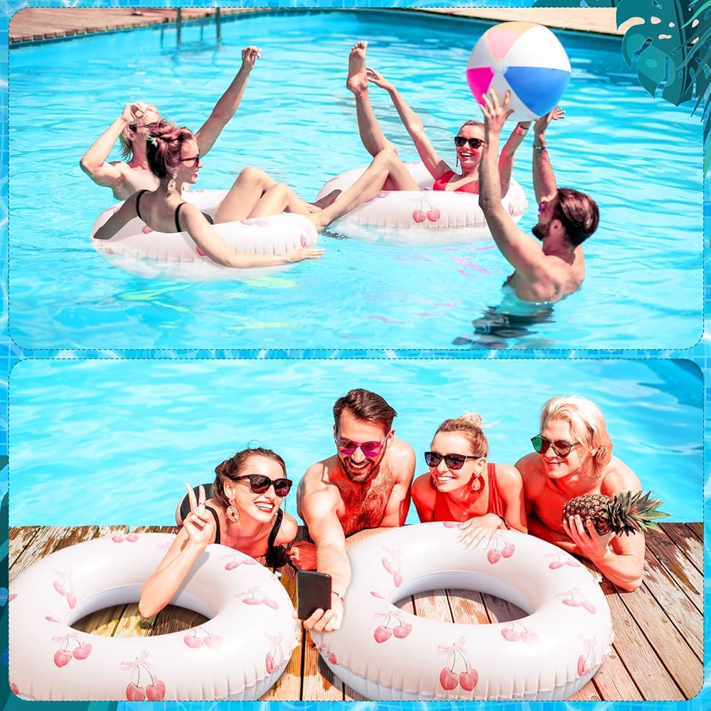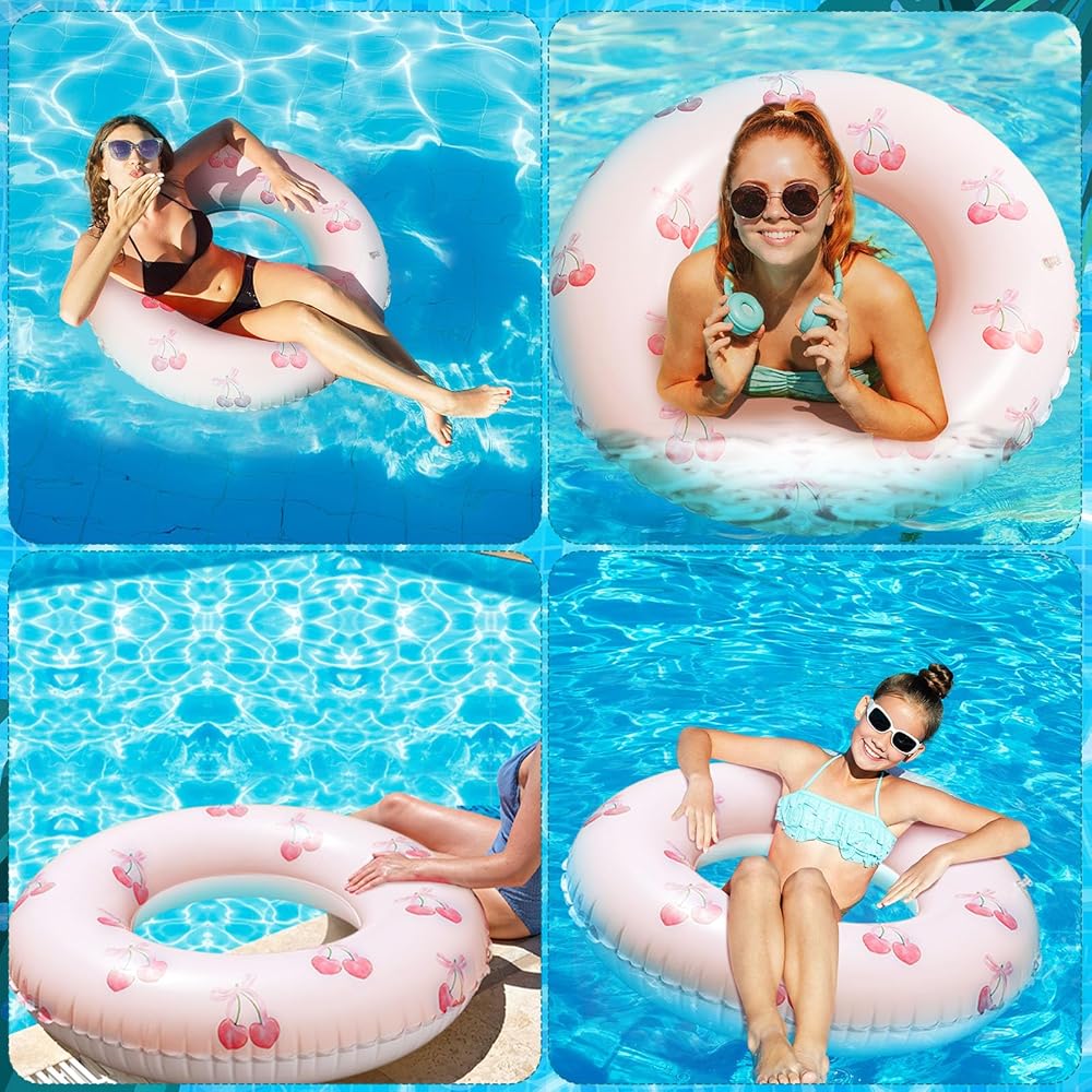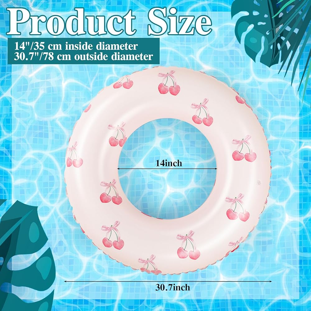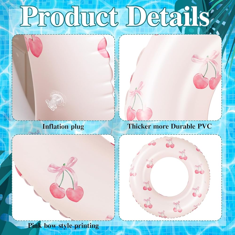 The inflatable pool toys float is designed with a pink cherry bow, makes the inflatable lounger a nice accessory for your next beach or pool party. Whether you are relaxing or swimming, you can use the inner tubes for pool to relax in the waters and enjoy the summer sun.