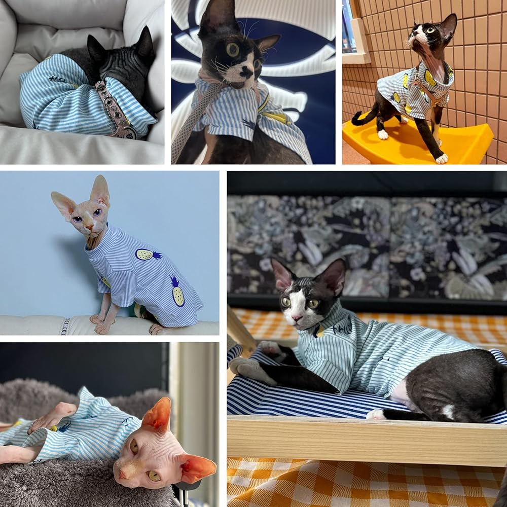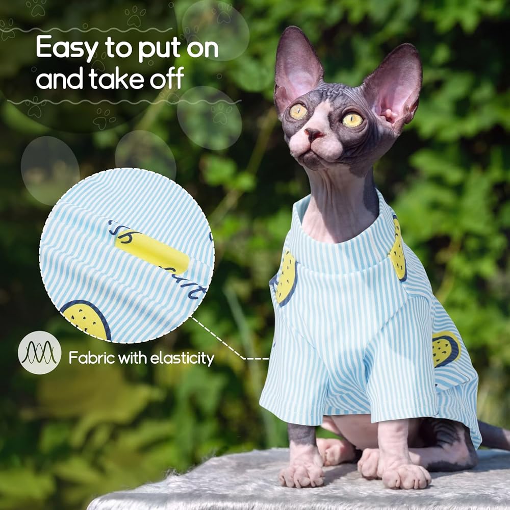 Protect Sphynx Cat Skin: Sphynx cats, with no fur, struggle to regulate body temperature, making their skin sensitive to environmental changes. This cat shirt, works year-round, keeping them warm in cold weather and cool in heat, ensuring comfort
