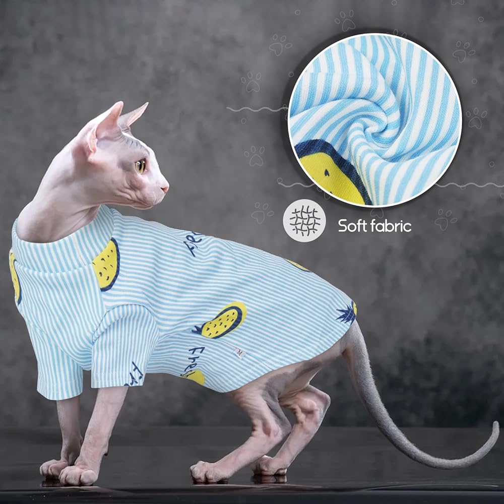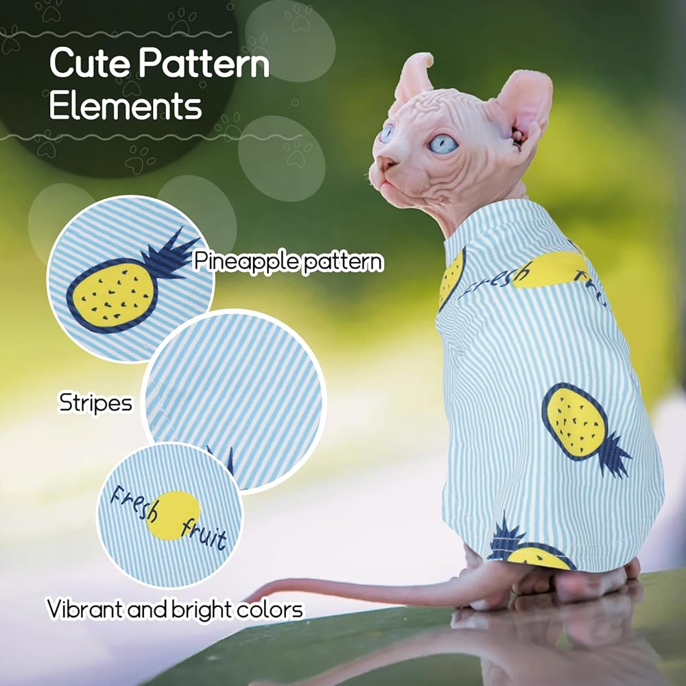Cute Pineapple Design: The hairless cat clothes's adorable pineapple print and bright colors make it stylish and eye-catching, helping your cat stand out and look irresistibly cute