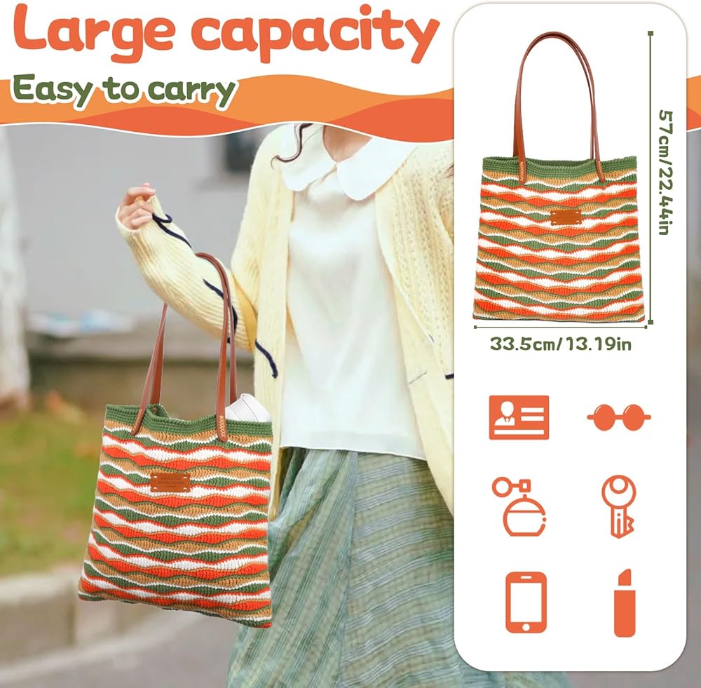 Fashionable Crochet Bag: Use this crochet kit to create a lightweight and flexible crochet bag that can be used for all occasions. Once you're done crocheting, you can easily store wallets, makeups, note-books and other small items. Perfect as an everyday shoulder bag, work bag, shopping bag, or even a decorative grocery bag.