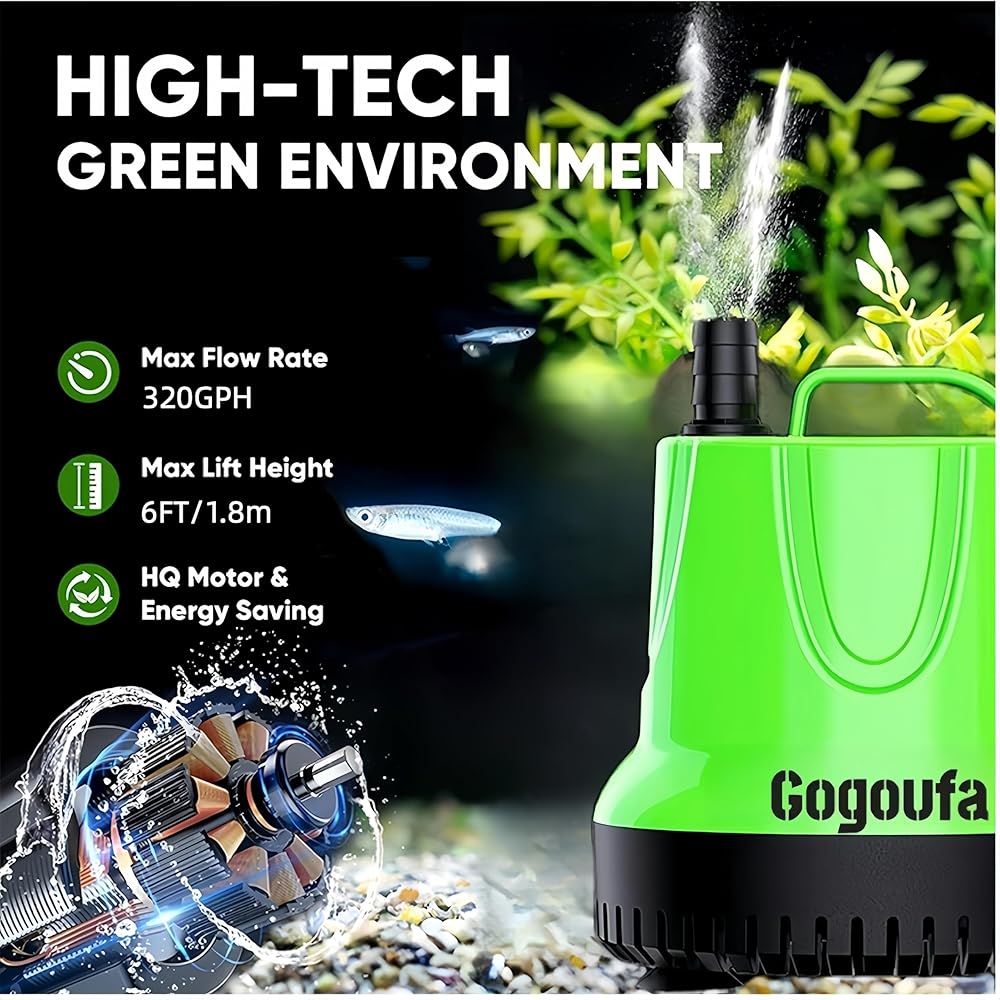 Versatile Applications: Equipped with detachable water outlet, suitable for various sizes of water pipes, this submersible pump can be applied to many different occasions, such as fish tank, pond, aquarium, hydroponic systems and etc