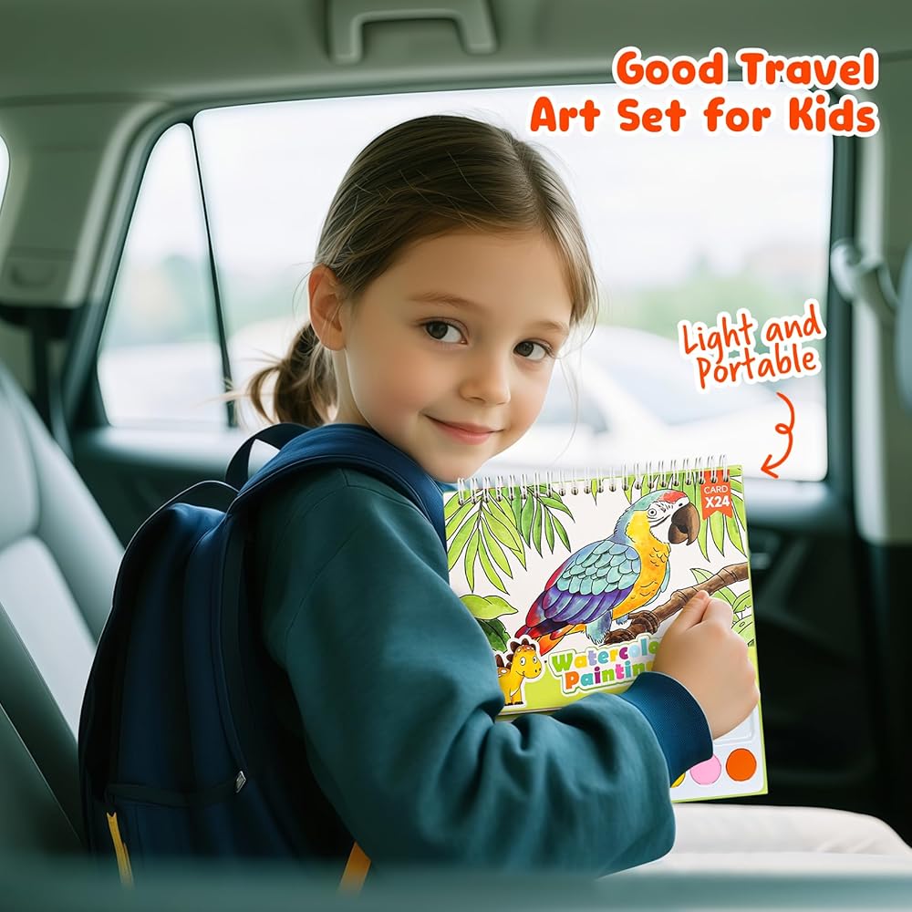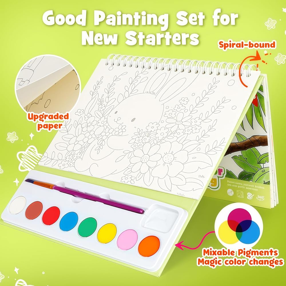 All-IN-ONE DESIGN: Coming with 8 pigments, paintbrush and papers. Printed designs allow kids to paint easily