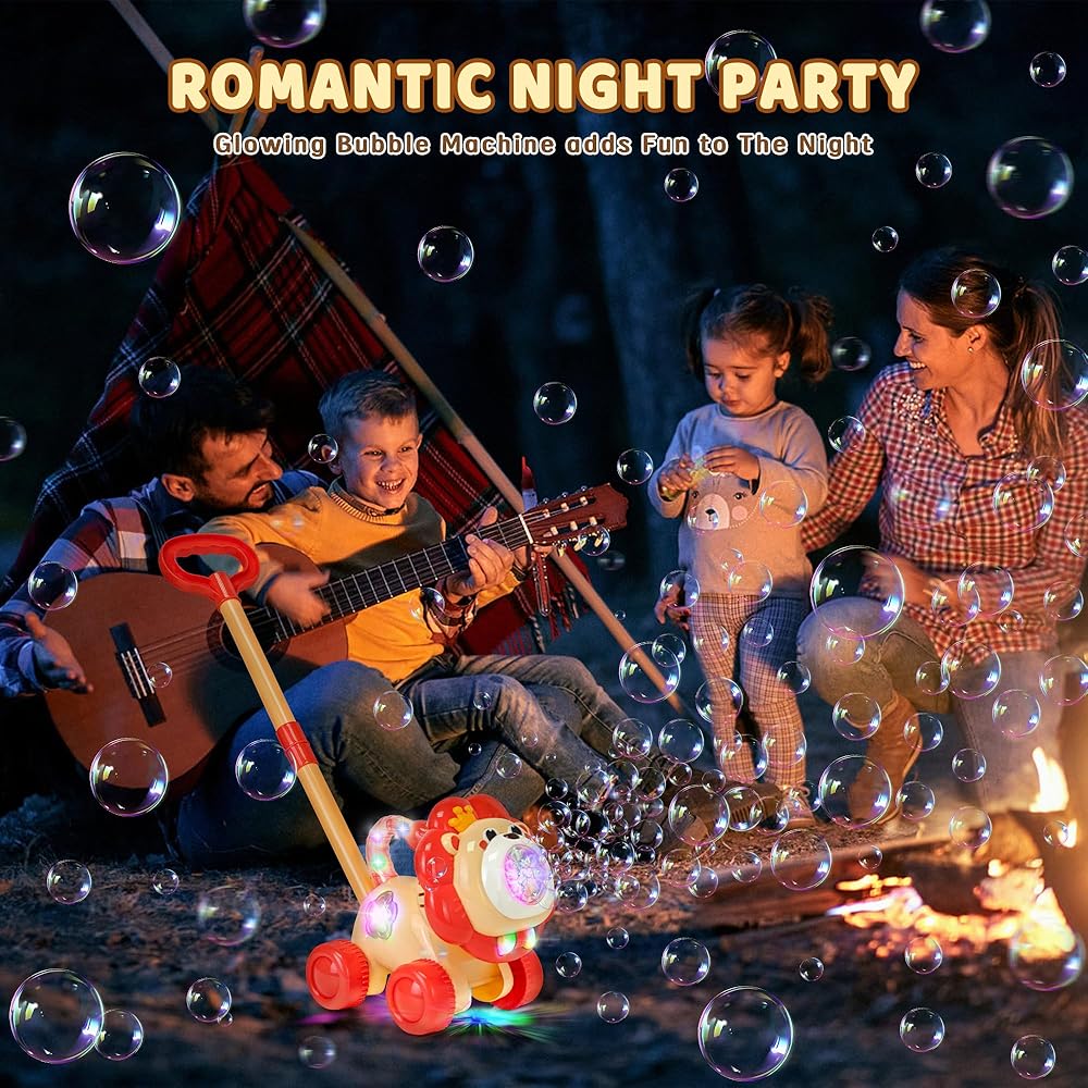 RECHARGEABLE BUBBLE MACHINE - With just a press of a button, the lion bubble machine lights up and produces thousands of colorful bubbles per minute. The vibrant bubbles and glowing effects make it a hit both day and night, adding magic to birthday parties, outdoor camping, beach gatherings, Christmas, Easter, weddings, and more. Its rechargeable design ensures long-lasting fun for any occasion.