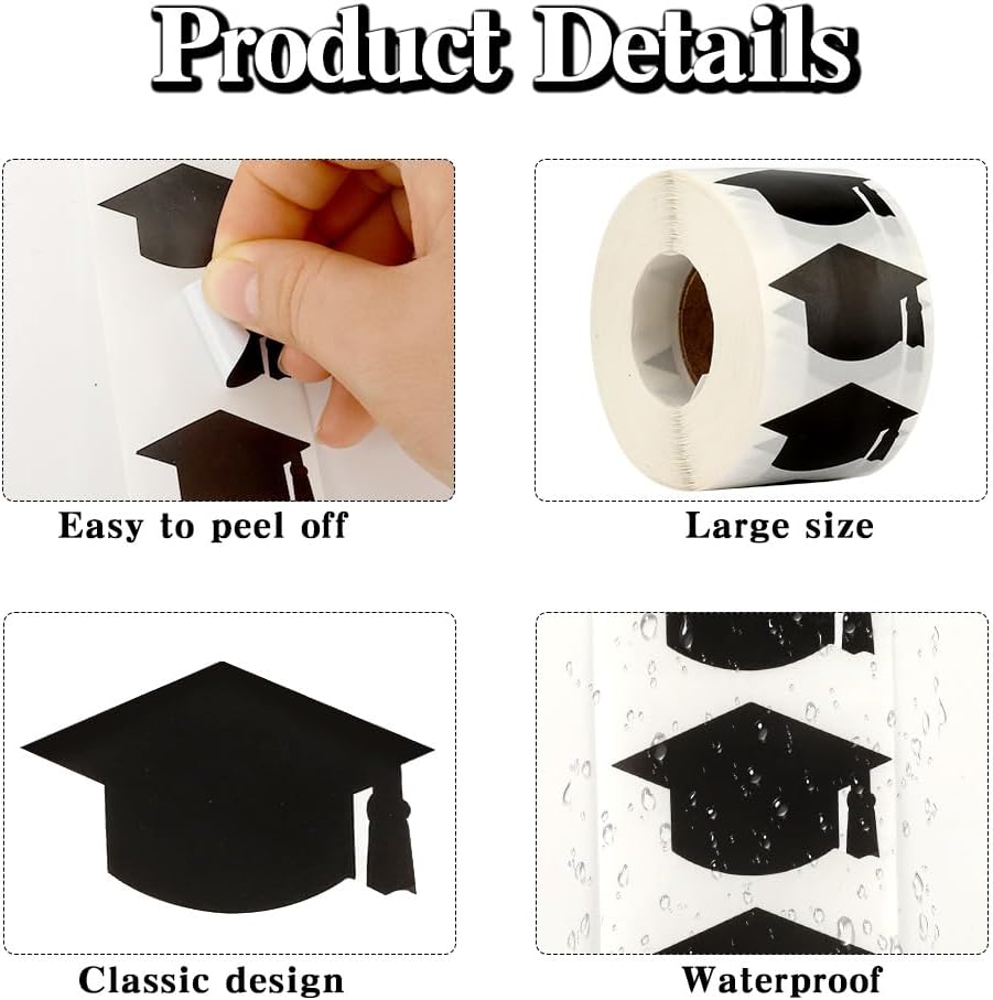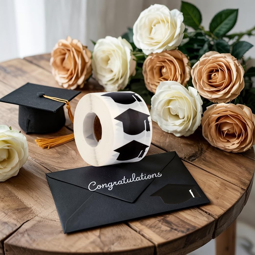 Value Package: You will receive 500 pieces black graduation stickers 2025 per roll in total, which is enough to meet your daily needs for graduation decorations or sealing of graduation gifts. Each graduation cap stickers has appropriate size 1.5 inch / 3.8cm, which is very suitable for most handicrafts