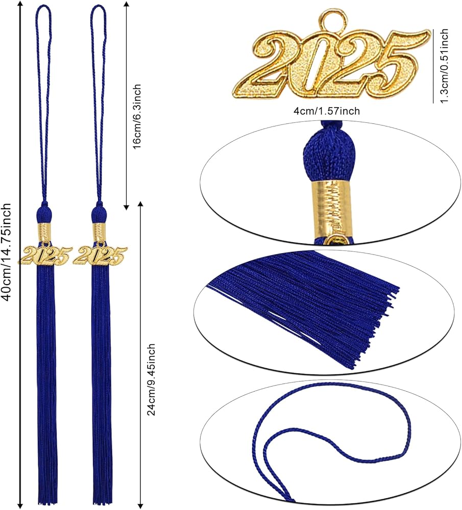 Suitable Size: You will receive 2pcs 2025 charm tassels. Graduation sewing tassel total length 17.7inches, with a 2025 date charm, it is a personalized ornaments. And is standard for all graduation of any level in school, college, and university! Not only that graduation tassels can be used as gown decorations, graduacion caps accessories essentials, grad party gifts, hats topper, kindergarten school graduate supplies, memorial frame decoracion, dress accessory and so on