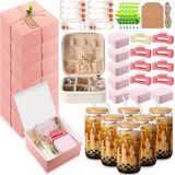Package Include: you will get 56 piece bridesmaid proposal gift sets including 8 mini travel jewelry boxes, 8 white paper gift boxes, 8 drinking glass, 8 square clips, 8 eucalyptus leaves, 8 card tags, 8 rope