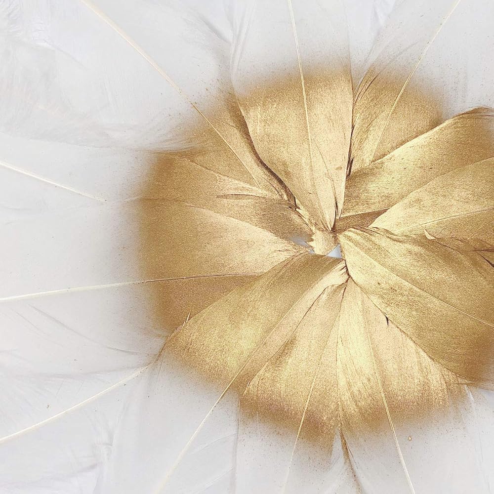 Material: Lovely ethically-obtained real feathers that are dipped in metallic gold paint that is permanent and scratch resistant. The feathers shine beautifully in the sunlight.