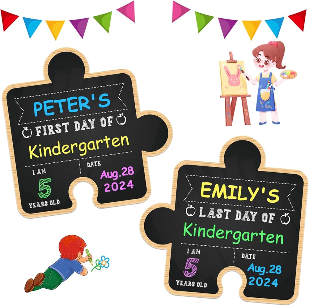 【First Day and Last Day of School Chalkboard】: The first day of school chalkboard is suitable for being a back to school photo prop, which is perfect for commemorating the first day of Preschool, Pre-K, Kindergarten, and 1st-12th Grades. Record the children's 1st day of school and take photos to capture these special moments.