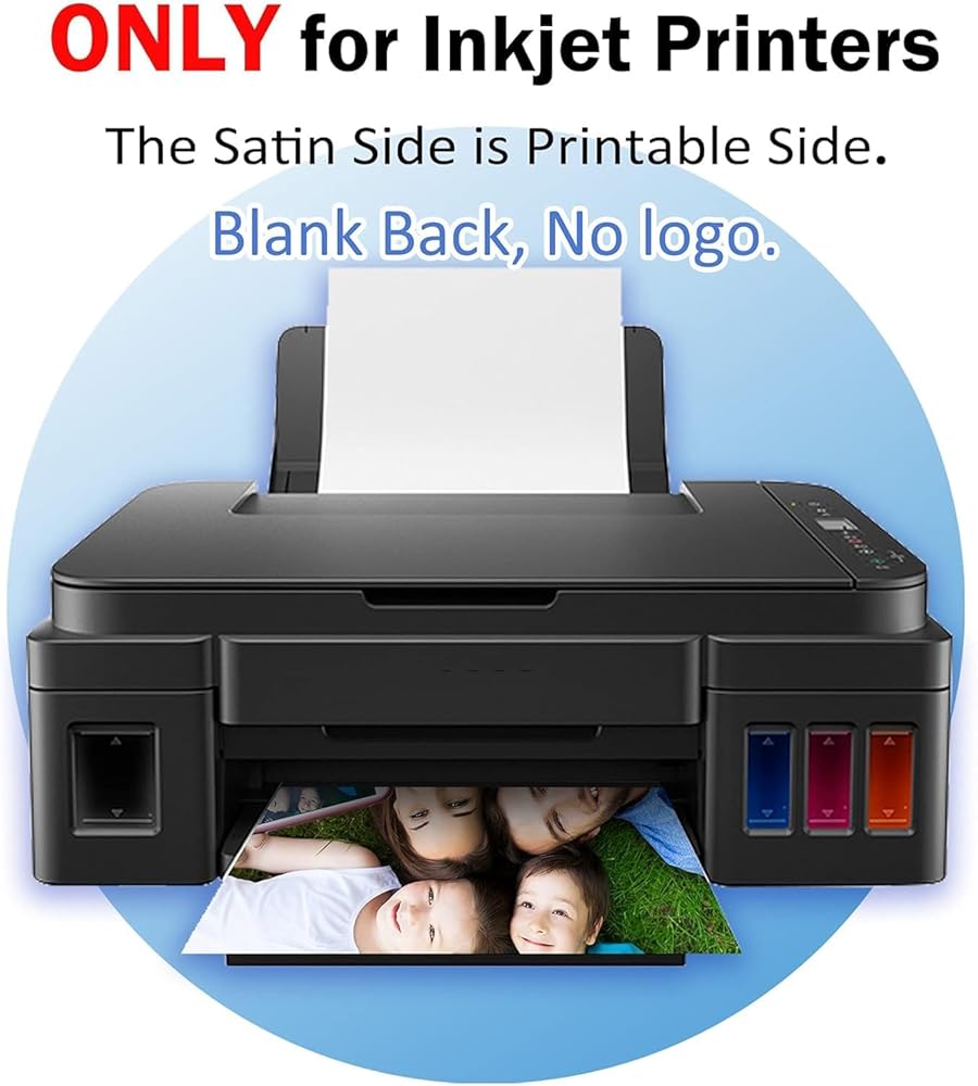 Single-sided printable photo paper. Only the side with satin texture is the printing side. Recommend printing with 'Paper Type' set to 'Photo Paper' to get beautiful photo projects