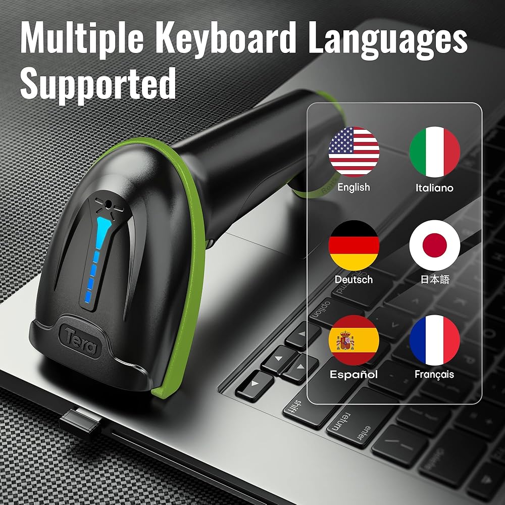 Tera Barcode Scanner Wireless Versatile 2-in-1 (2.4Ghz Wireless+USB 2.0 Wired) with Battery Level Indicator 328 Feet Transmission Distance Rechargeable 1D Laser Bar Code Reader Handheld 5100E Green