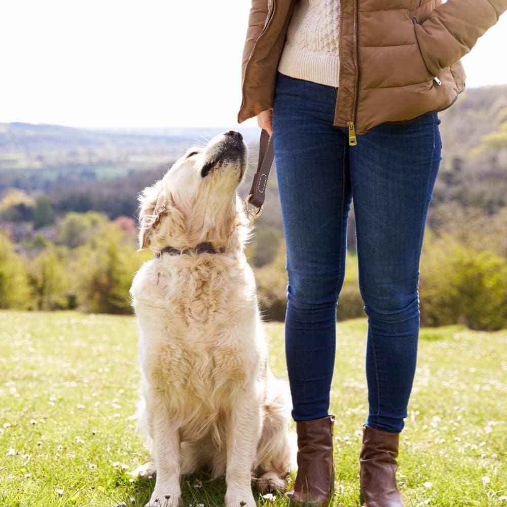 Short dog leather leash, convenient and fast to control the dog quickly and quickly, to prevent the dog from accident