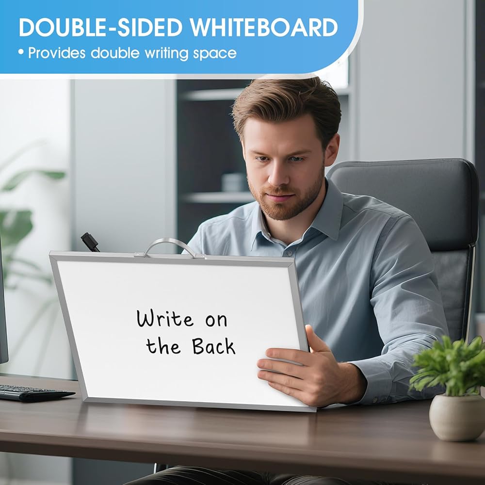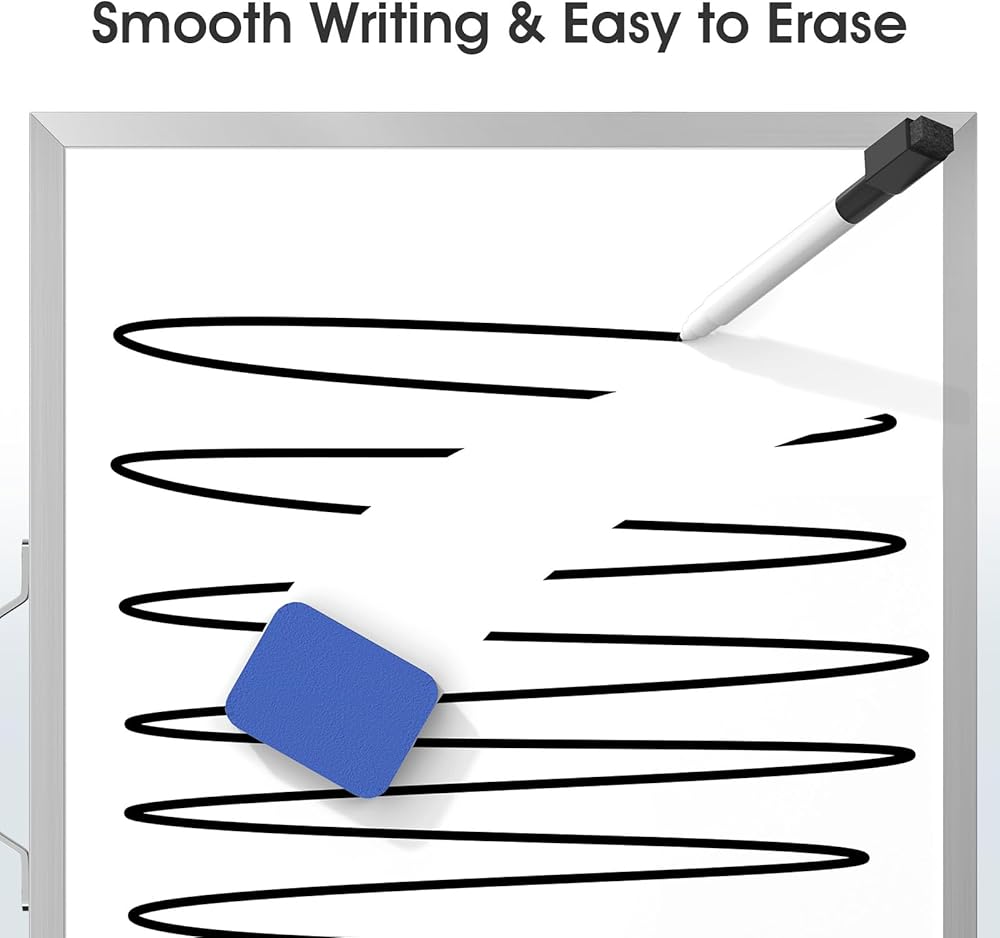 Available On Both Sides: This double-sided dry erase board for wall provides plenty of space for notes, reminders, and ideas. When one side is full, just flip it over and continue using it, effectively saving you time.