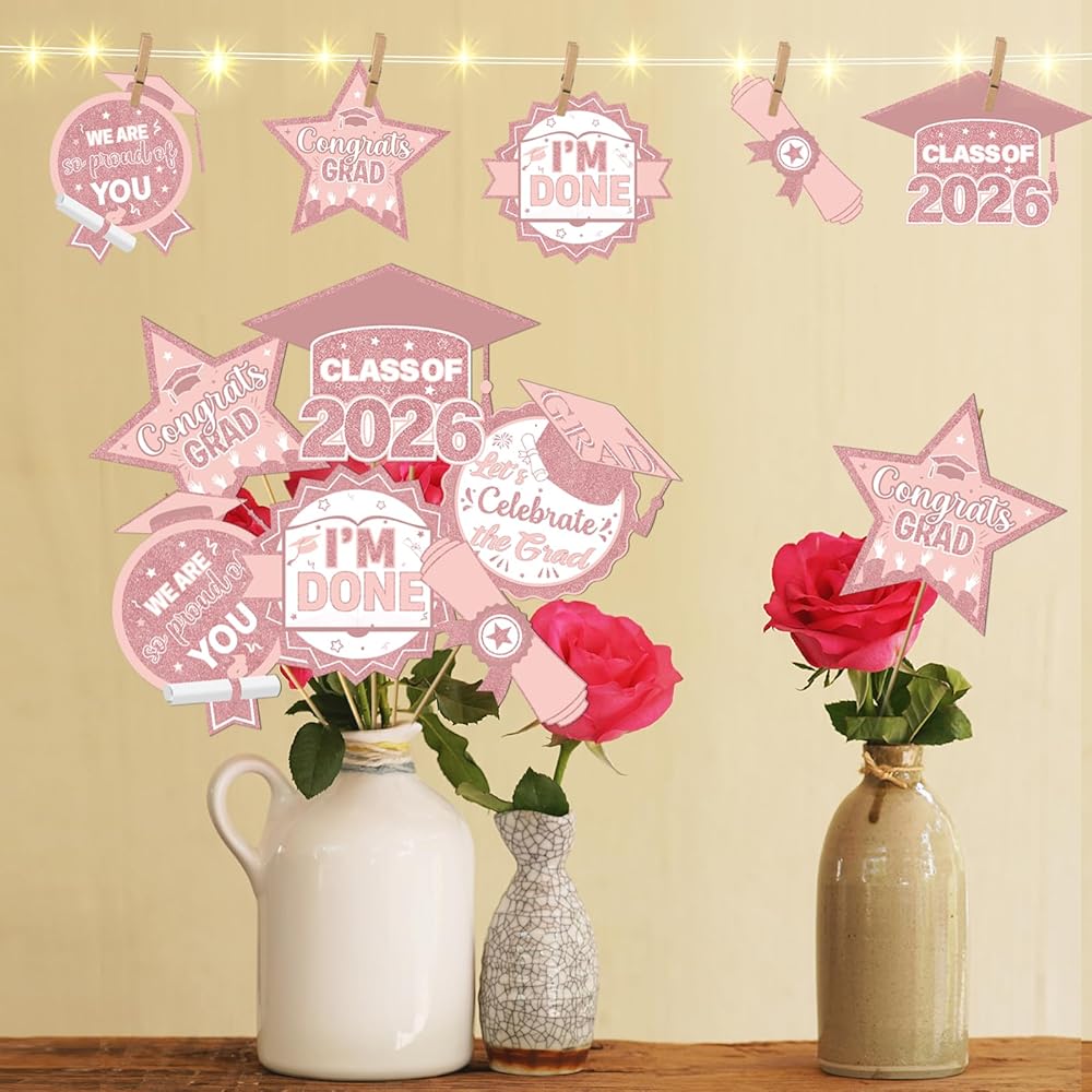 2026 Graduation Centerpieces for Tables: 36Pcs Pink White Graduation Party Centerpieces with Lights Graduation Decorations Class of 2026 Graduation Table Decorations 2026 Graduation Party Decorations