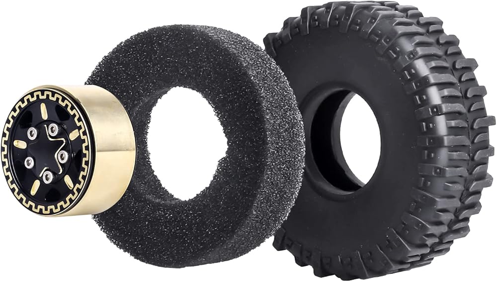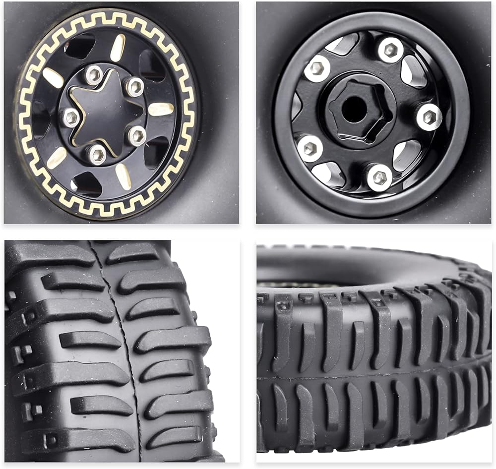 ✔Package Include: 4x Brass 1.0 Beadlock Wheels, 4x 1.0 Tires( Foam Inserts), 4x M2.5 Lock Nuts, 4x M2 Locknuts, 4x Washers, 1x Small Cross Wheel Wrench