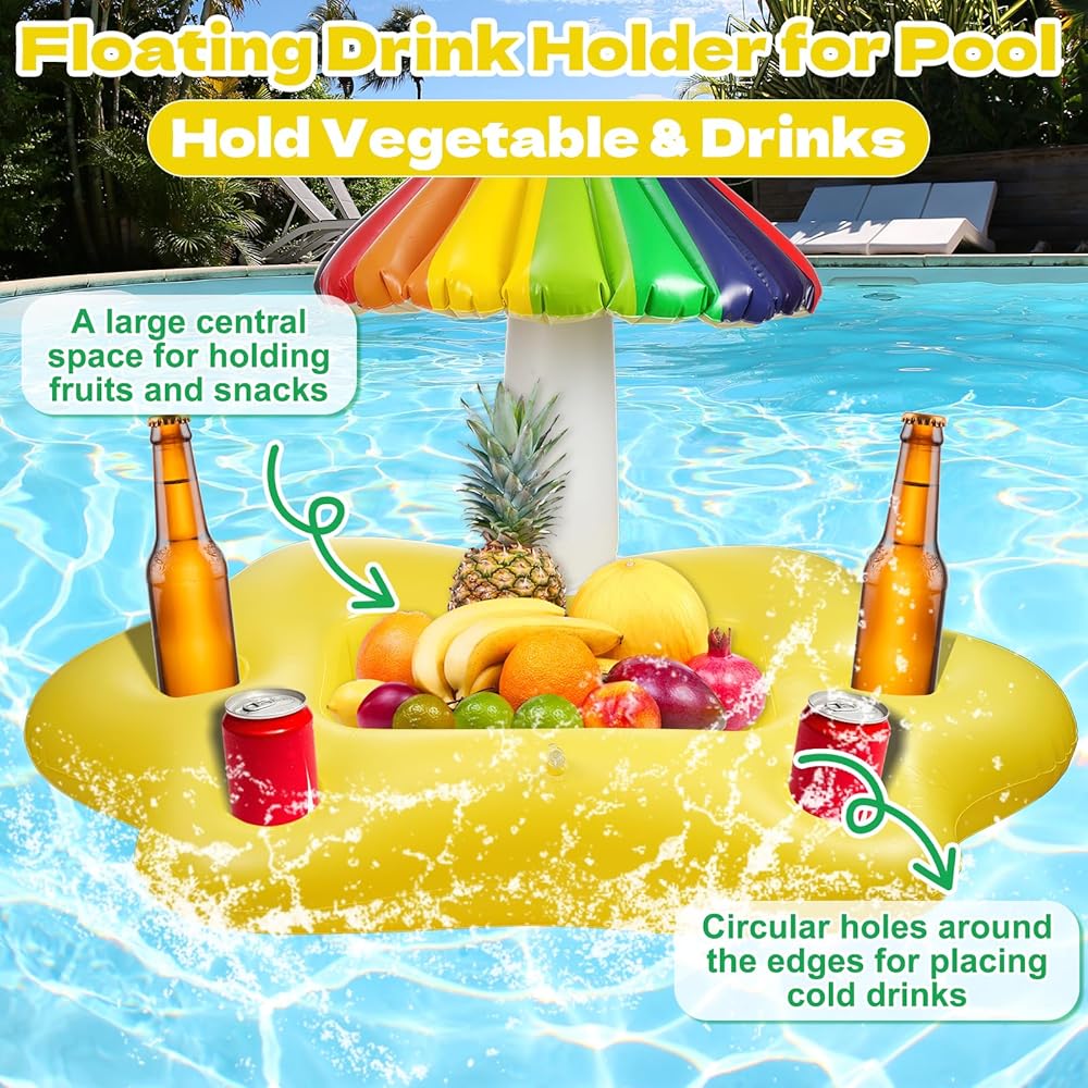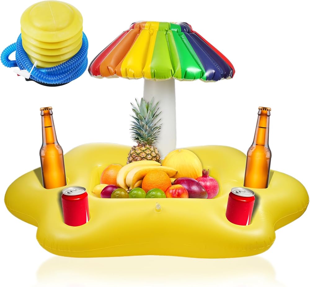 Inflatable Floating Drink Holder for Pool, 4 Holes Floating Cabana Bar Pool Drink Floats Water Food Tray for Adults Beach Hot Tub Swimming Party Hold Fruit Beverage Snack with Air Pump, Coconut Tree