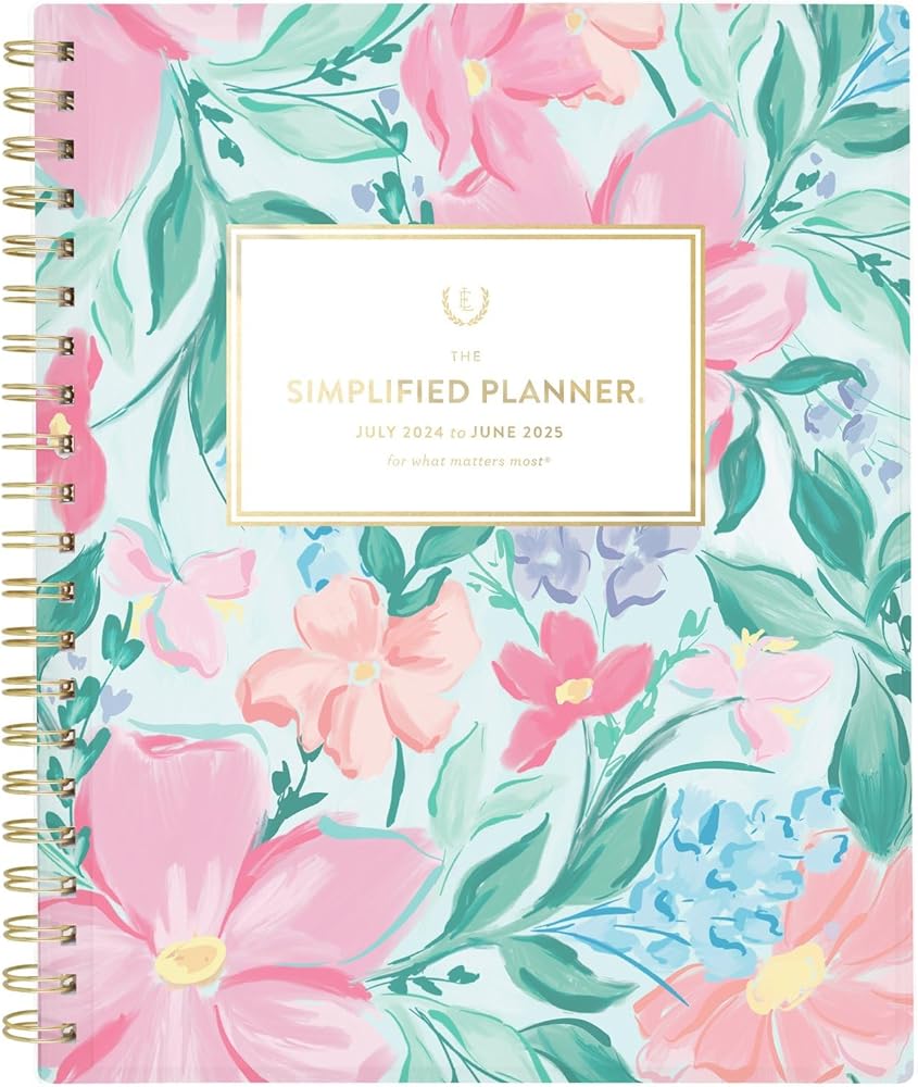 Organize your tasks and plan to live your best life with this Simplified by Emily Ley for AT-A-GLANCE Weekly Monthly Planner. This planner covers 12 months from July 2025 — June 2026 and is guaranteed to last all year.* The durable poly cover with Petite Floral design features graphic florals and pops of greens, pinks and blues. Plan your schedule without fear of distracting ink bleeding. Our high-quality paper is designed for ink bleed resistance, which helps keep plans neat and legible. Weekly spreads feature ruled planning space Monday-Sunday plus circles to check off tasks. Pages measure 8-1/2" x 11". The monthly spreads have unruled daily blocks, a lined to-do section and a “simplicity tip” for ideas on how to organize your schedule. Months are tabbed to quickly flip to any date. Special pages include The Process of Simplifying, How to Use the Planner, Simplicity Challenge, bucket list, holiday list, 1 notes page, a reference calendar and 2 future planning pages. Comes with a full set of colorful stickers to highlight important events, emphasize priorities and mark special occasions. Gold twin wire binding. The Simplified collection of organizational tools was created to help busy women live simpler lives and create margin for the good stuff of life. *ACCO Brands will replace any defective AT-A-GLANCE planner that is returned within one year from the date of purchase. This guarantee does not cover damage due to misuse or abuse.