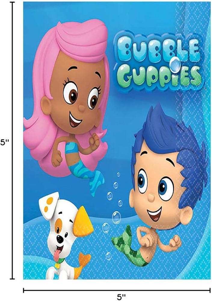 All of the children at your event will just love to use these Bubble Guppies Beverage Napkins. This blue napkin feature two guppies and their dog swimming around the words ?Bubble Guppies.? 16 napkins come in a pack.