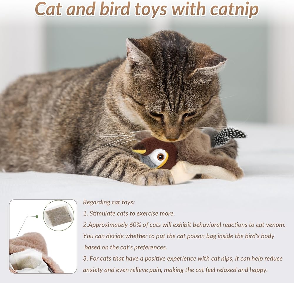 【Encourages Natural Instincts】With flapping wings, chirping sounds, and catnip infusion, this toy stimulates your cat's natural hunting instincts. It helps reduce boredom, promotes exercise, and strengthens the bond between you and your furry friend.