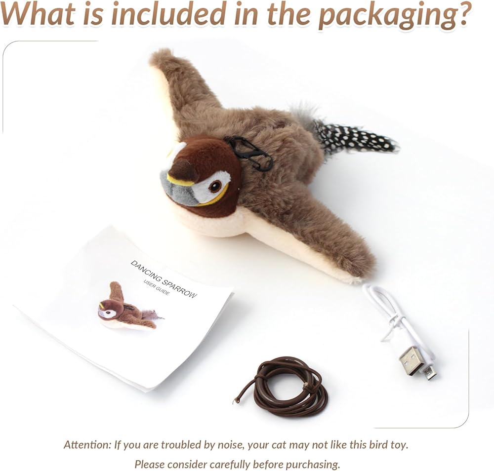 【Interactive & Engaging】The moment your cat touches this toy, it comes to life—flapping its wings and chirping like a real bird. Designed to mimic natural prey, this lightweight and compact bird toy keeps your feline entertained while blending seamlessly into your home.