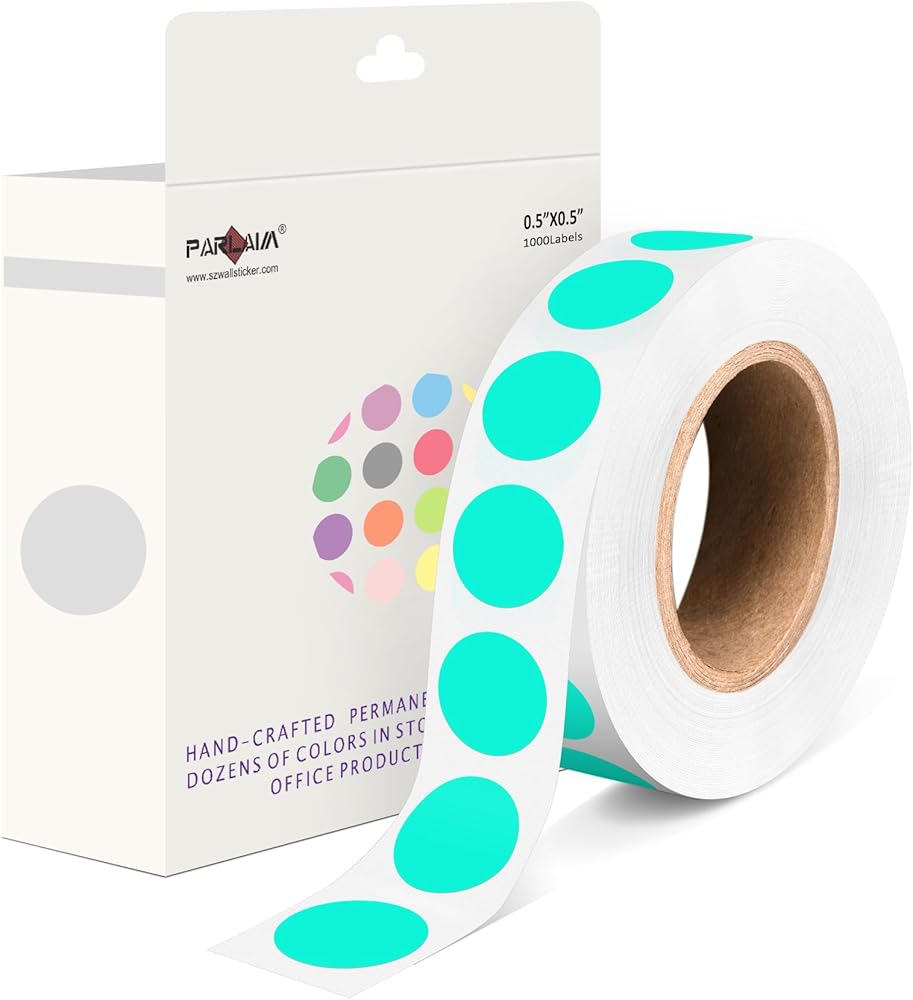 PARLAIM 1000 Pack 0.5 inch Diameter Round Dot Stickers, Aqua Color-Coding Circle Labels