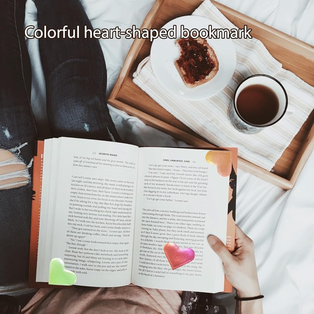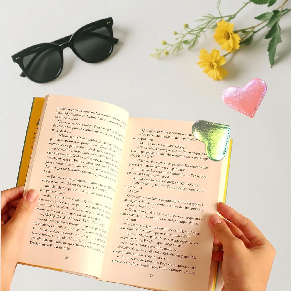 6PCS Leather Heart Bookmarks, Corner Bookmark, Page Markers for Women, Kids, Teachers, Students, Reading Gifts for Book Lovers, Bulk Classroom Prizes for Girls & Boys
