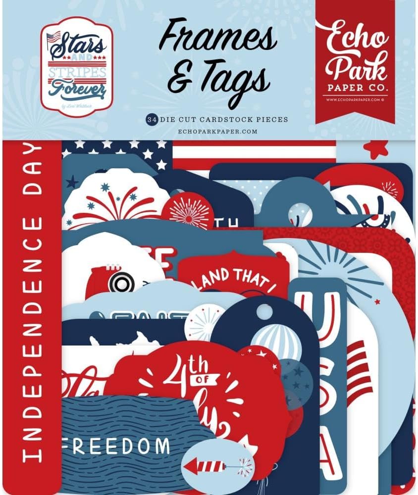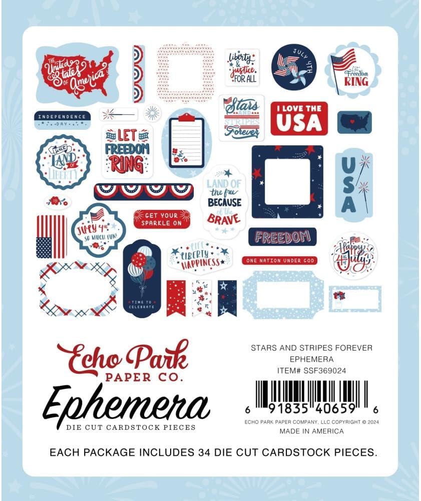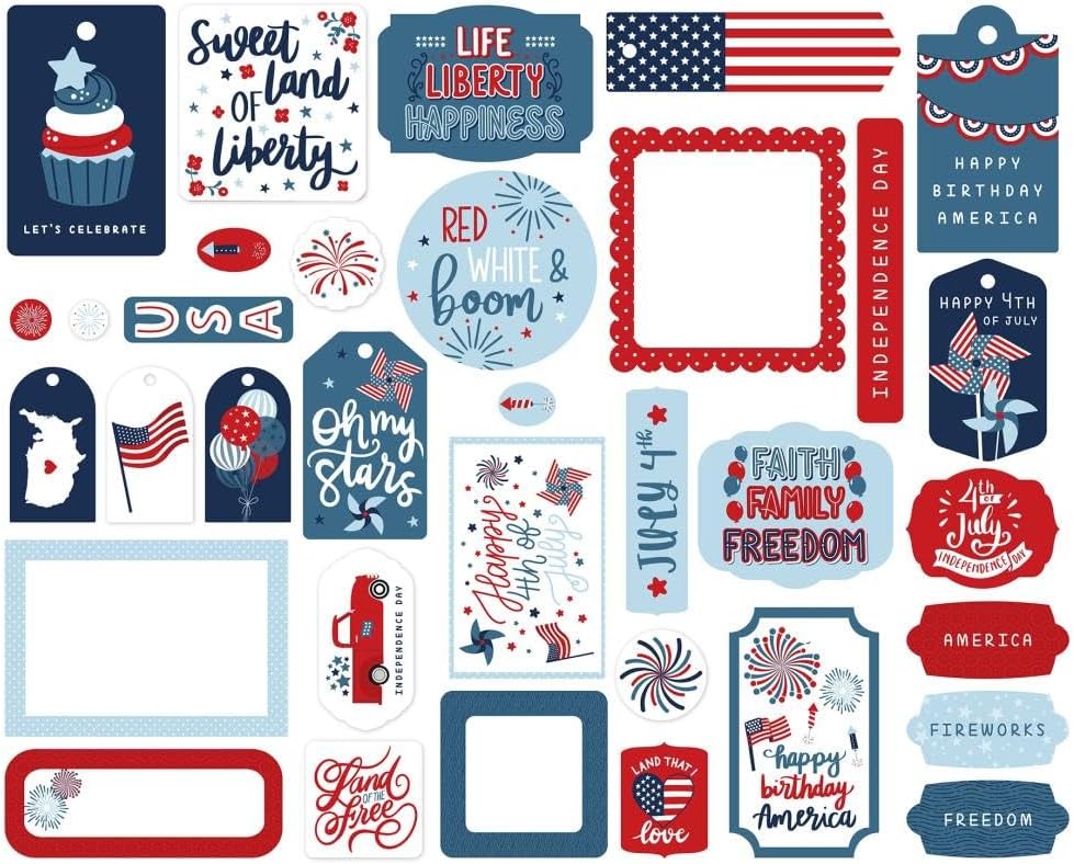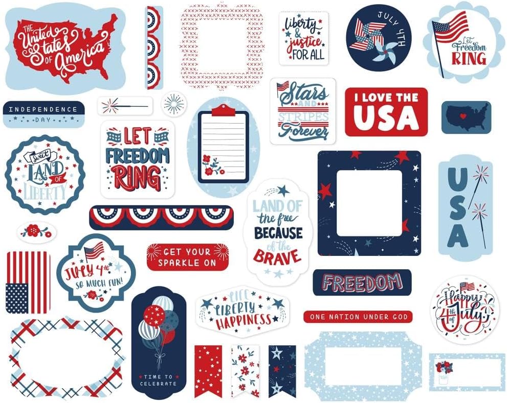 Echo Park Paper Collection Bundle: Stars and Stripes Forever Ephemera + Stars and Stripes Forever Frames & Tags Ephemera, Mixed, EP-SSF-02